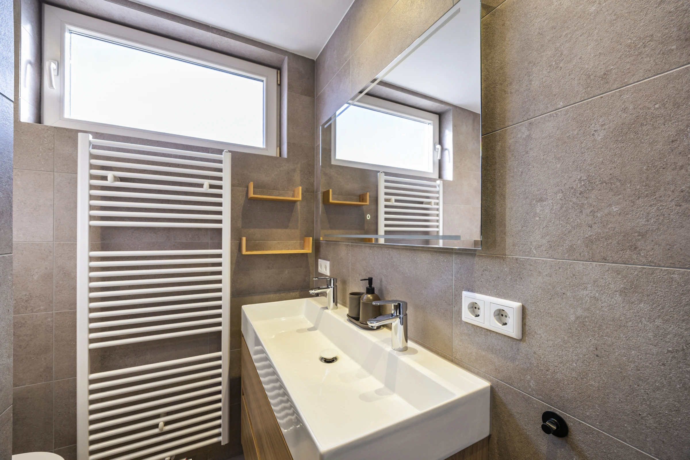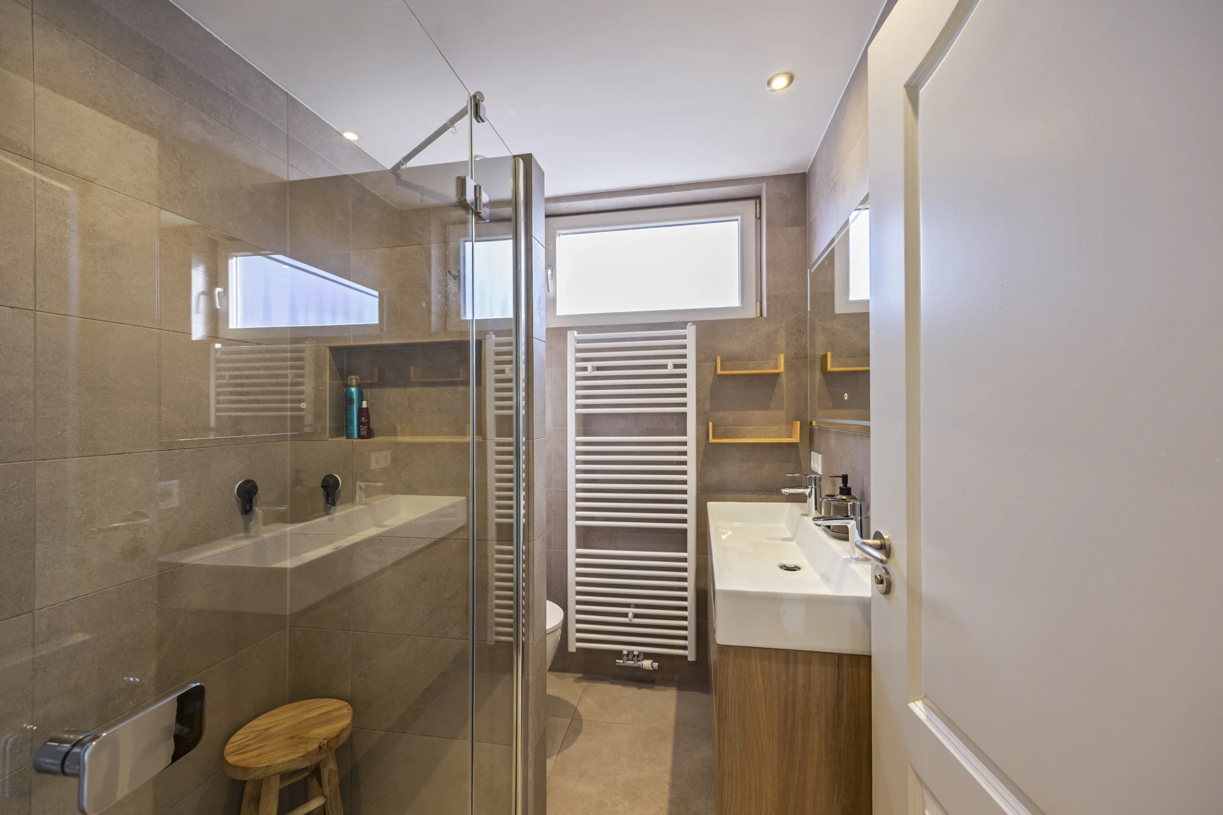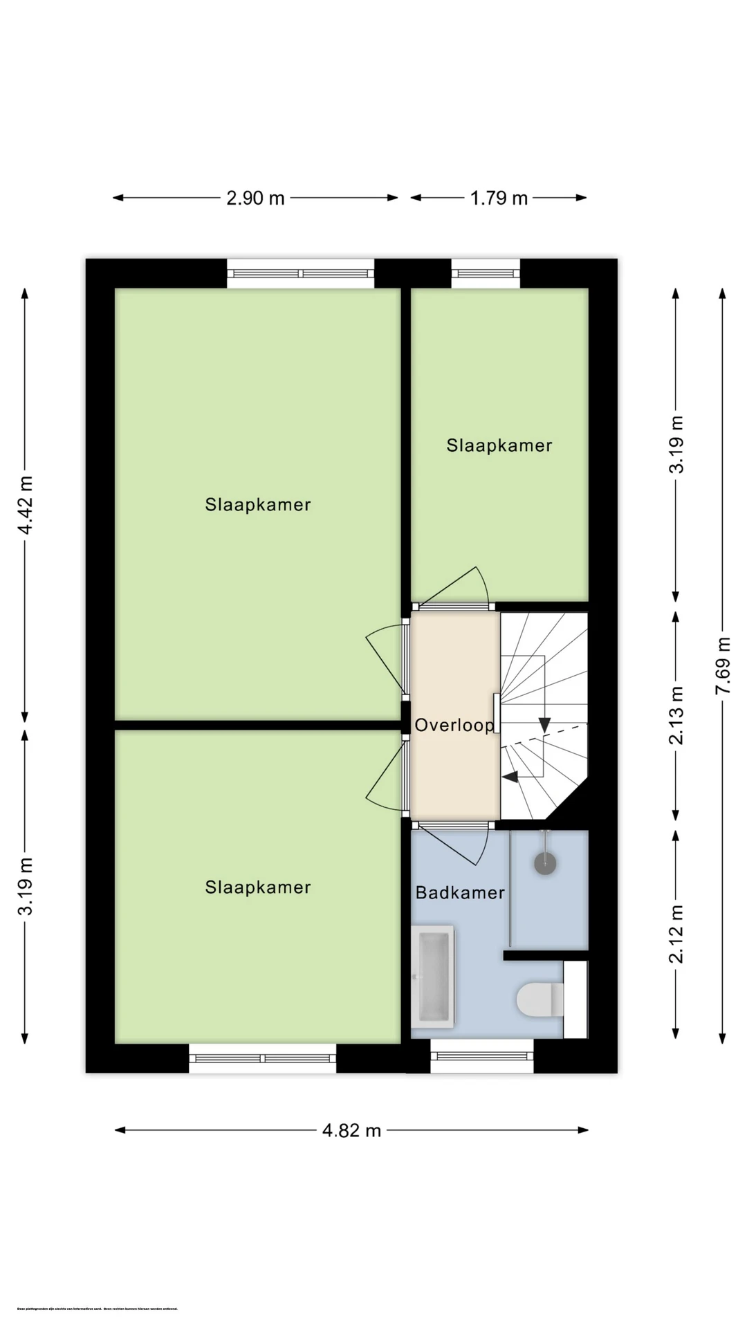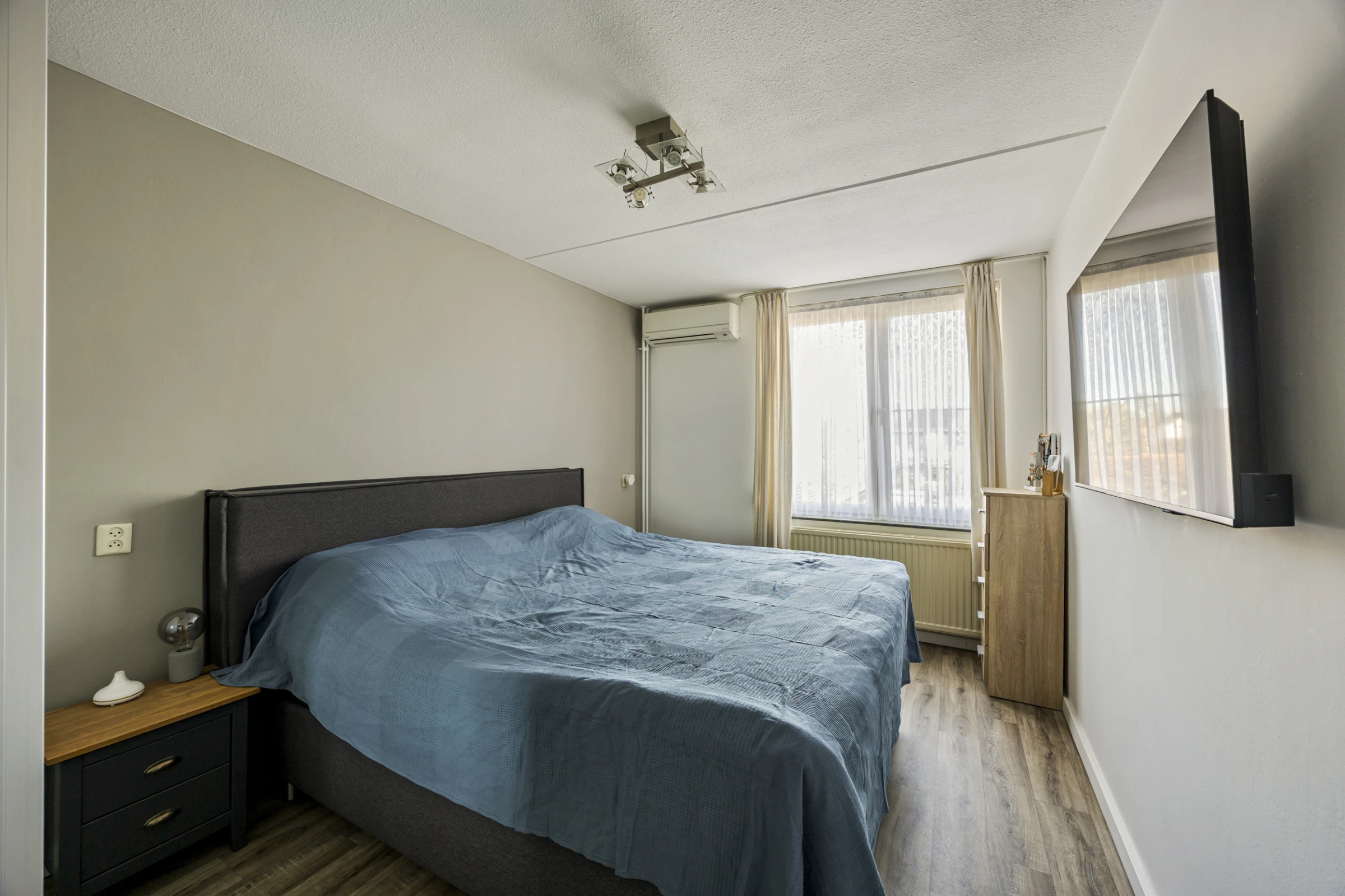 Via de overloop op de 1e verdieping zijn de 3 nette slaapkamers en de moderne badkamer te bereiken. Deze badkamer is geheel betegeld en bevat een 2e toilet, een bidet, een wastafelmeubel en een inloopdouche. De 3 slaapkamers hebben Novilon vloeren en kunststof kozijnen, met HR++ beglazing en rolluiken. Tenslotte beschikt de hoofdslaapkamer over een airco.