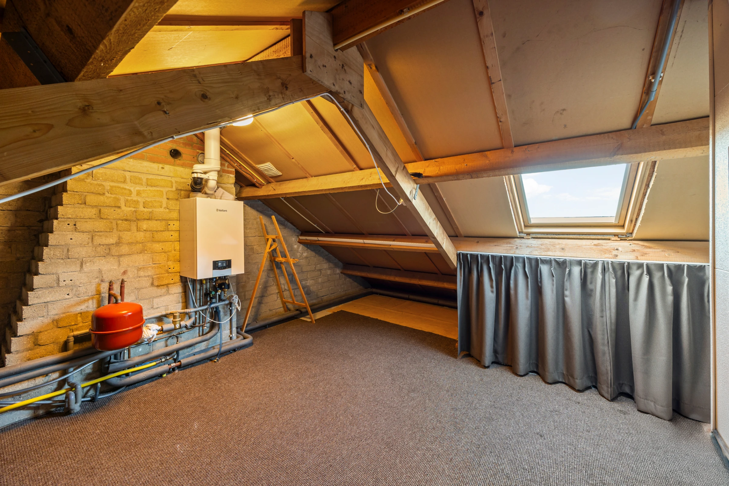 Via een vaste trap is de riante zolderverdieping bereikbaar. Dit is momenteel een grote, open ruimte, maar hier kun je prima een 4e (slaap)kamer of hobbyruimte realiseren. Tenslotte bevindt zich hier de CV combiketel (Vaillant, eigendom, 2024).