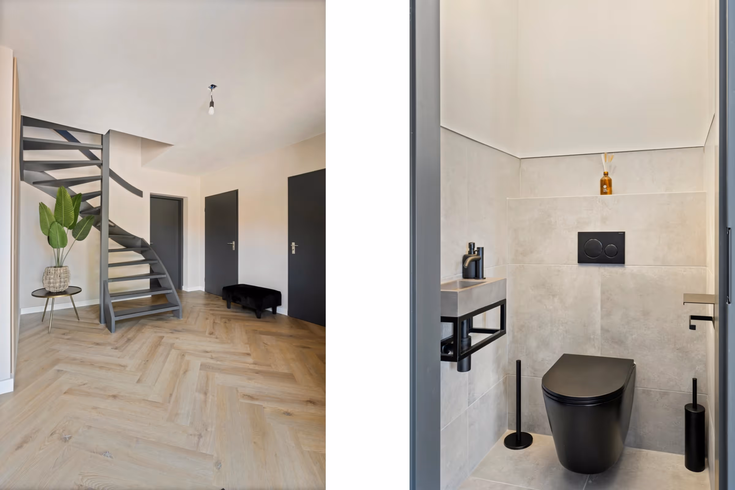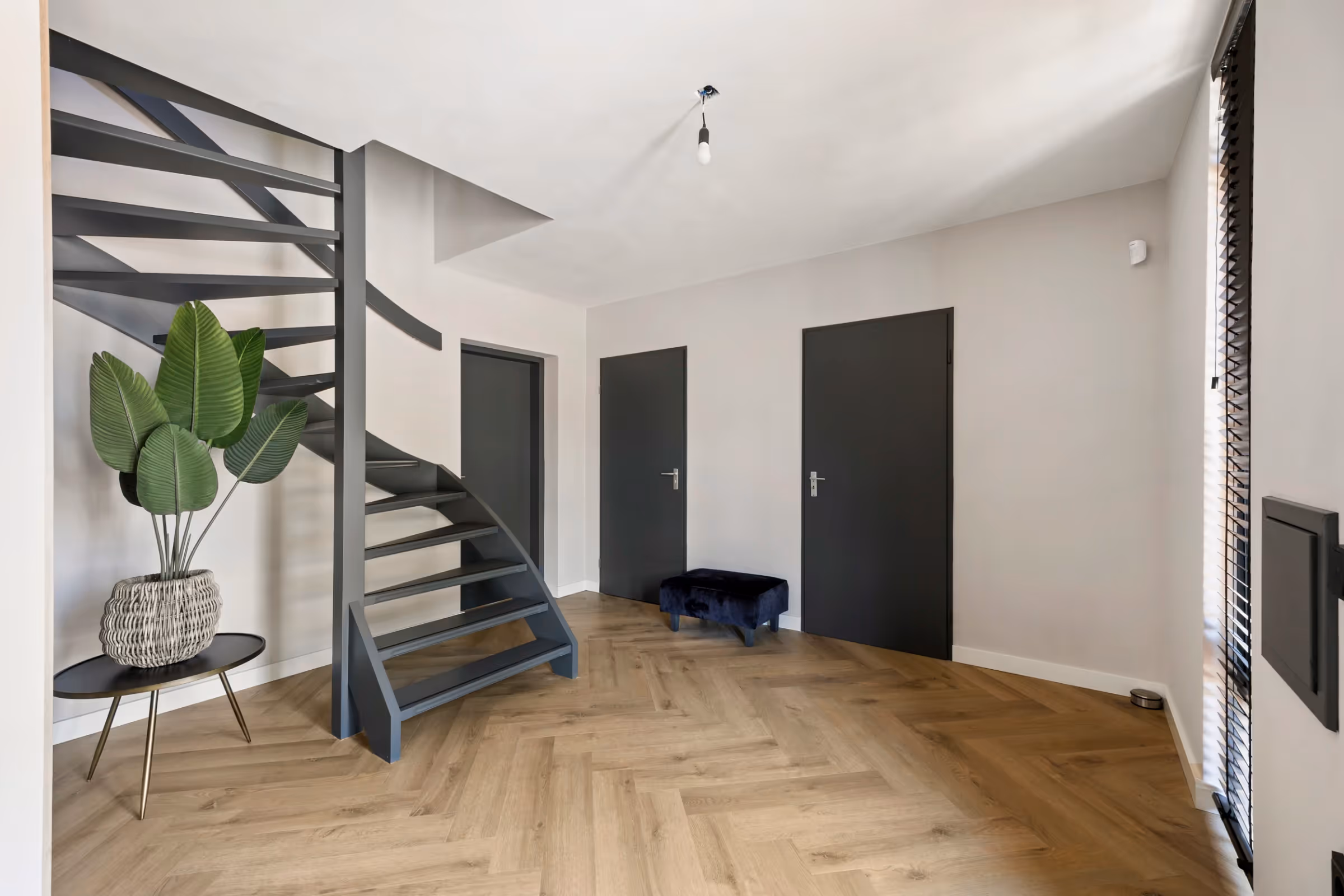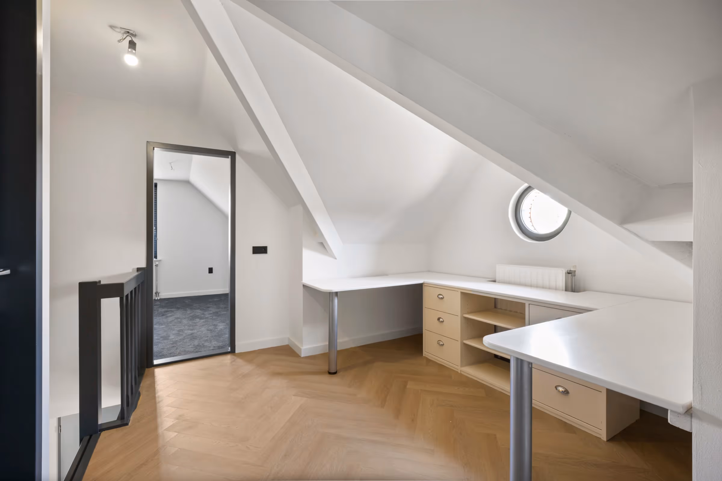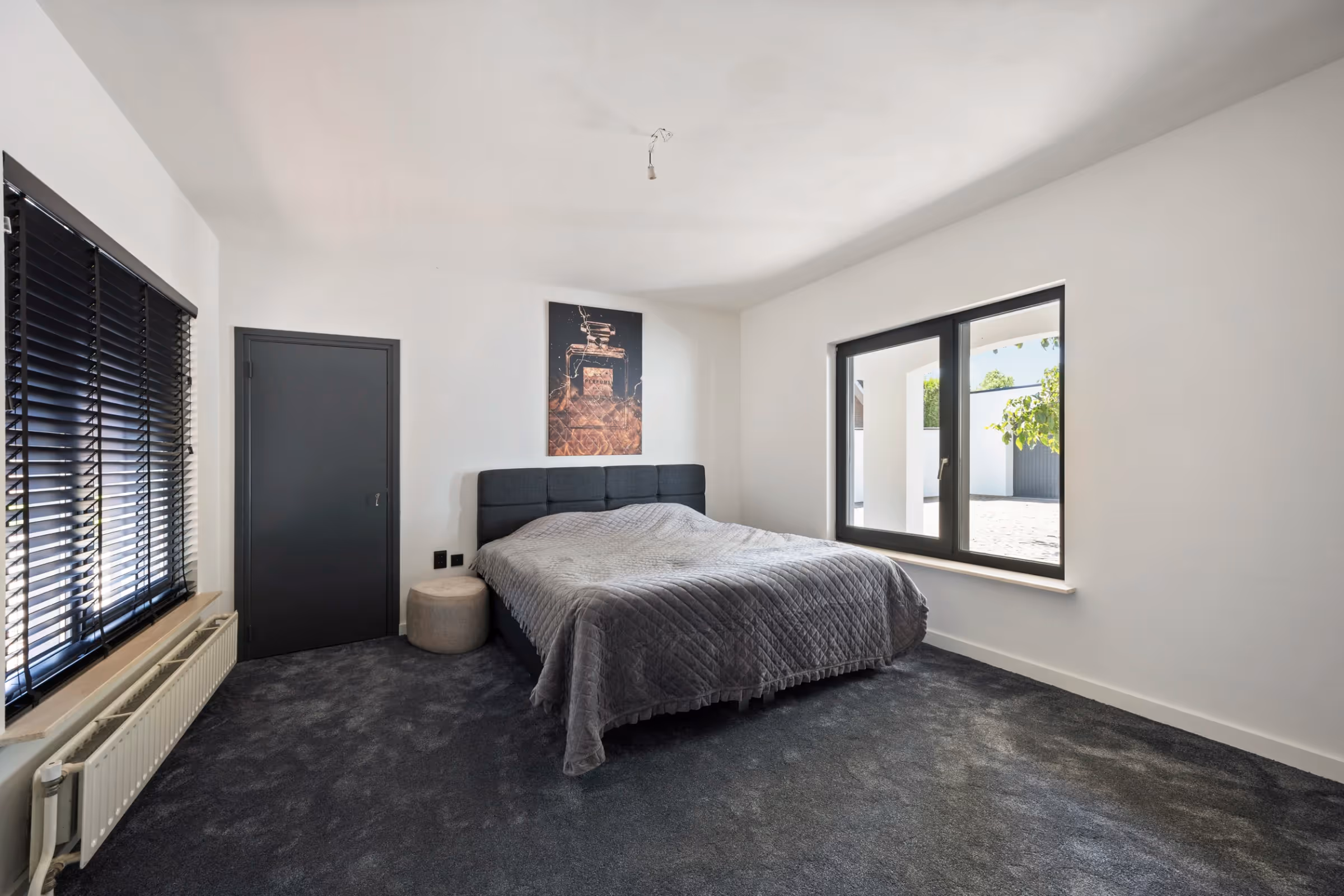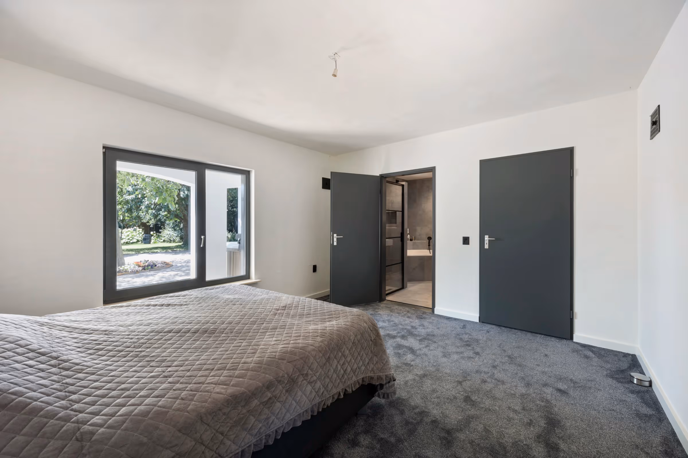 De hoofdslaapkamer ligt op de begane grond, met een badkamer en suite. Zo heb je een fijne, levensloopbestendige indeling voor de toekomst. De slaapkamer op de begane grond heeft hetzelfde, uitstekende niveau van afwerking als de gehele woning.