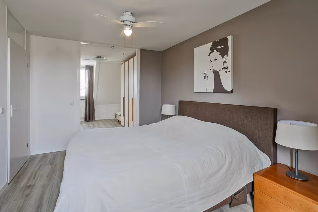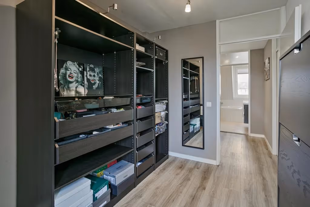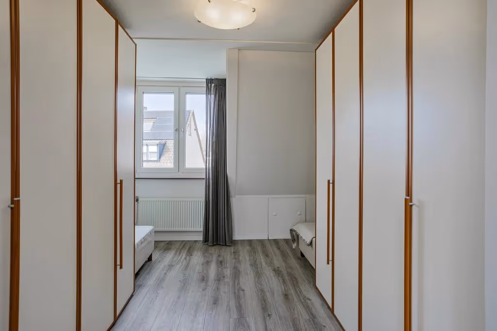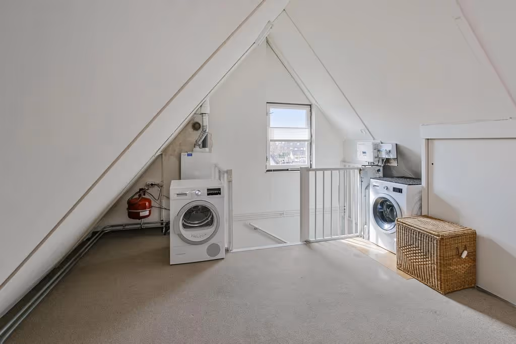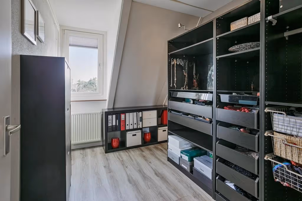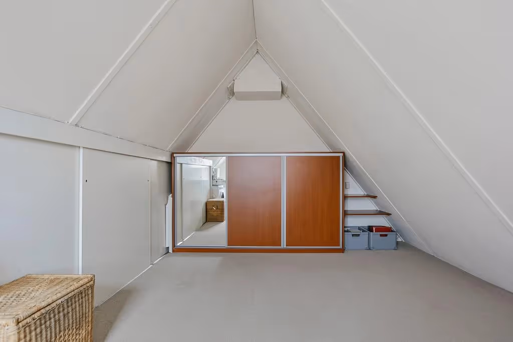 Via een vaste trap is de 2e verdieping te bereiken. Hier bevindt zich een ruime extra kamer, welke prima dienst kan doen als thuiswerkplek of 4e slaapkamer. Verder zijn hier de CV combiketel (Nefit, eigendom, 2017), de collector van de zonnepanelen en de aansluitpunten voor de wasmachine. Tenslotte zit in de dakschuinte veel extra opbergruimte in de kasten met schuifdeuren.