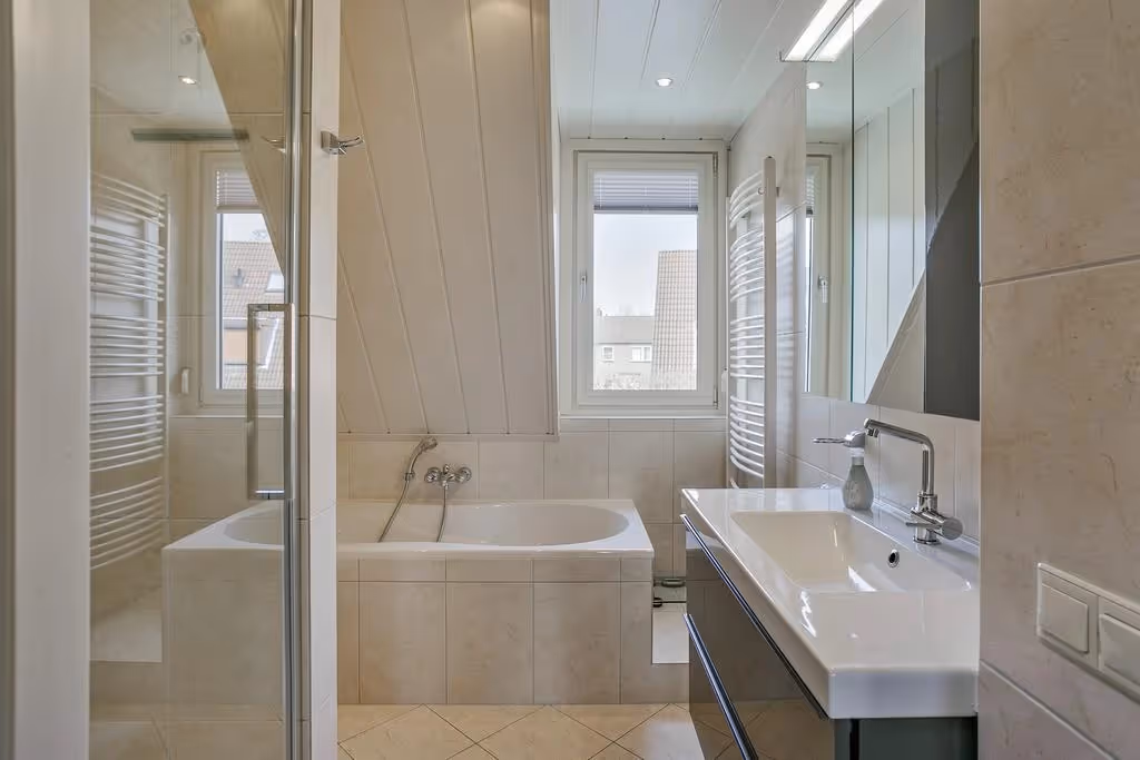- Nette badkamer met ligbad, douche en modern wastafelmeubel