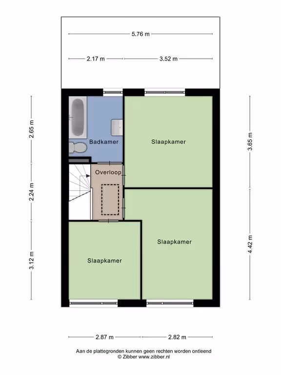 Via de overloop zijn 3 slaapkamers en de ruime badkamer toegankelijk. Deze badkamer beschikt over een wastafelmeubel, een ligbad en een 2e toilet. Alle 3 de slaapkamers hebben een keurig niveau van afwerking met o.a. laminaatvloeren en rolluiken, maar beschikken wel over kozijnen met enkele beglazing.
