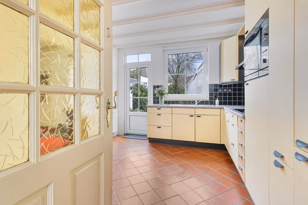 Sfeer en charme, dat zijn de eerste woorden die bij ons opkomen als we deze hoekwoning aan het Gebroek 61 zien. Behalve een sfeervolle uitstraling heeft dit woonhuis van omstreeks 1900 een circa 30 meter diepe achtertuin om heerlijk van te genieten. Waar je niets aan hoeft te doen, zijn de kozijnen. Die zijn allemaal al van kunststof en hebben dubbele beglazing met kruisstijlen, passend bij de charmante uitstraling van het huis. De houten luiken aan de voorkant en de koperen dakgoten maken het plaatje compleet.