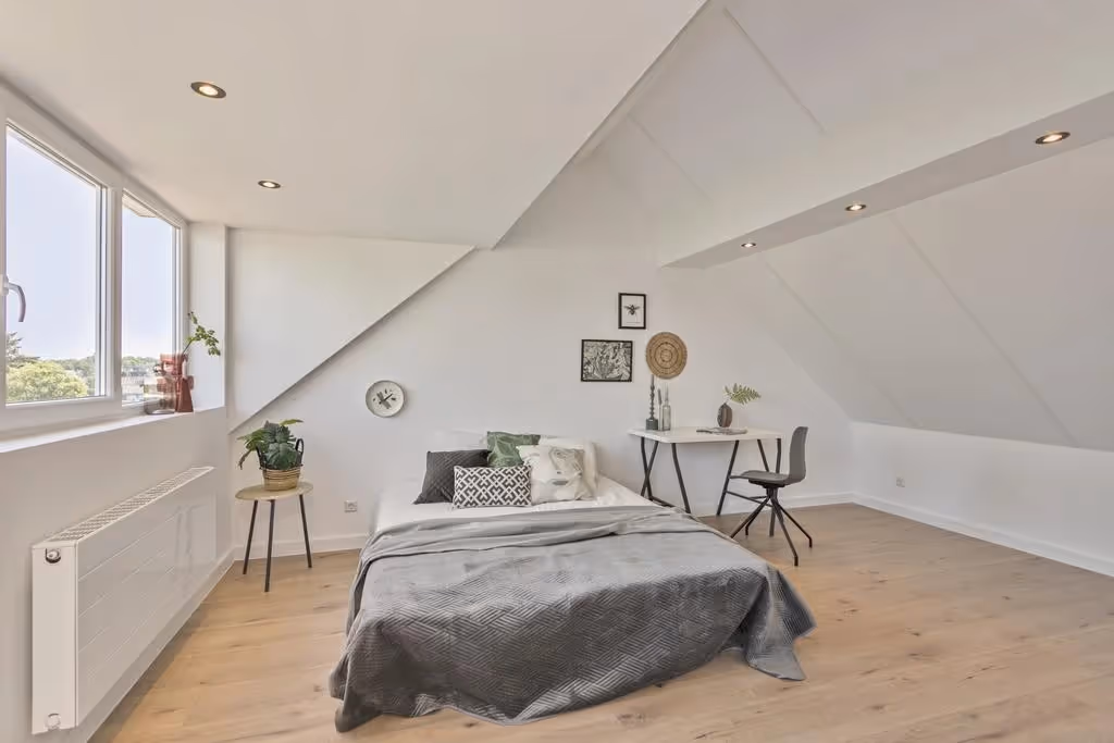 En dan de slaapkamers.. Neem jij die op de zolder met de en suite badkamer, luxe ligbad en een heerlijk uitzicht naar buiten vanuit de dakkapel, of toch de hoofdslaapkamer op de 1e verdieping?