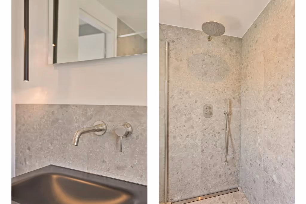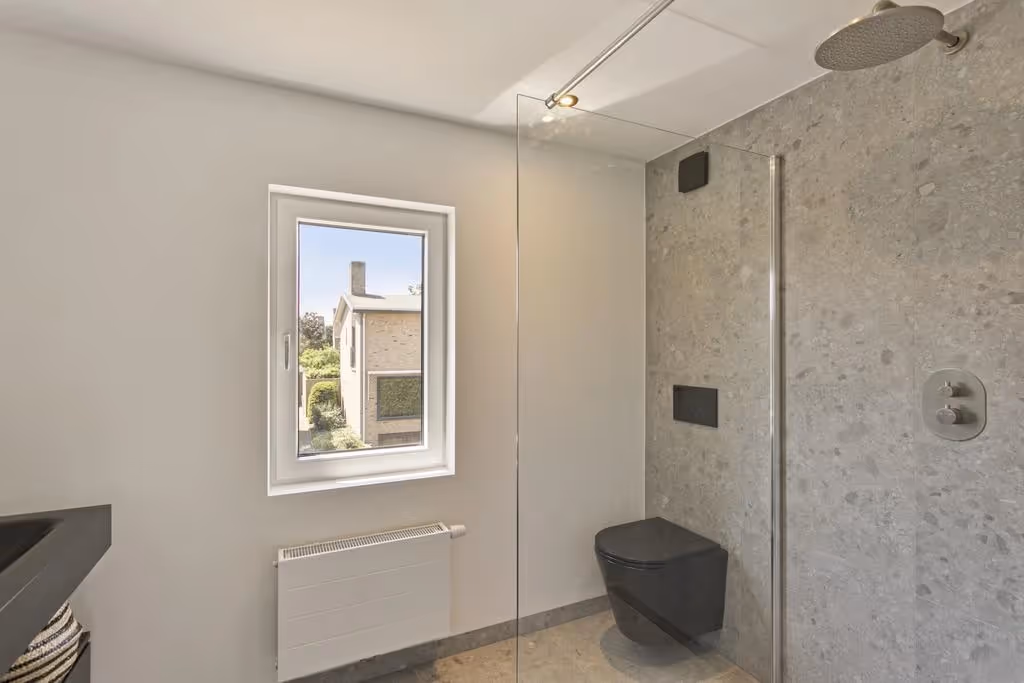 Op de 1e verdieping liggen 3 slaapkamers en een moderne badkamer met stijlvolle, zwarte accenten en prachtige tegels. Alle 3 de slaapkamers op deze verdieping beschikken over een laminaatvloer en strak gestucte wanden. De badkamer over een riant wastafelmeubel met dubbele wastafel, een toilet in zwarte kleurstelling en een inloopdouche. En deze badkamer heeft elektrische vloerverwarming, heerlijk toch?
