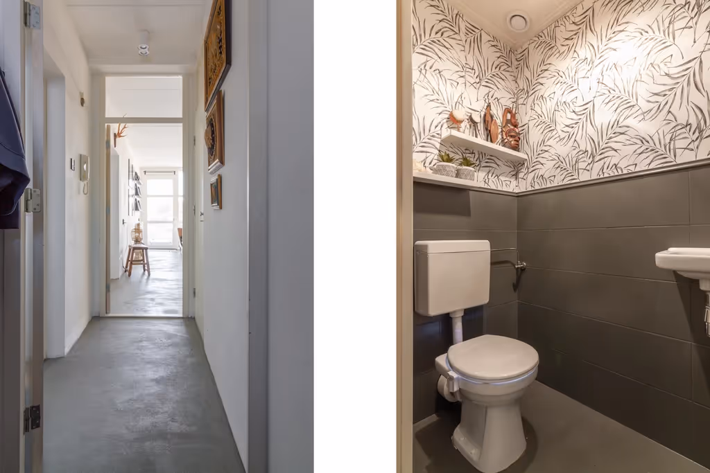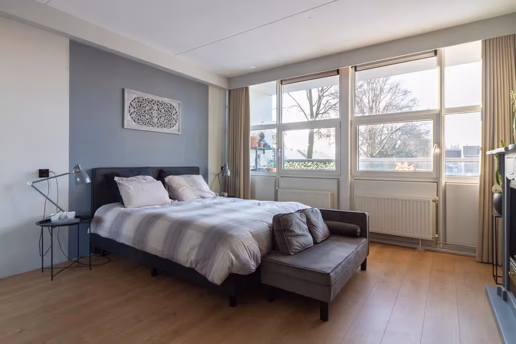 Als je verder door het appartement loopt, kom je achtereenvolgens bij de badkamer, de hoofdslaapkamer en het gastentoilet. Zowel de hoofdslaapkamer, als de logeerkamer, hebben allebei een royale maatvoering en een keurig niveau van afwerking, met onder andere laminaatvloeren.