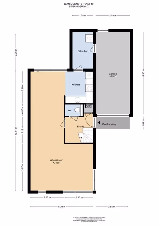 Via de entreehal, waar tevens het gastentoilet en de moderne meterkast zijn gelegen, kom je in de woonkamer. Deze L-vormige woonkamer is lekker licht en ruim van opzet. Aan de achterzijde ligt de half open keuken, met modern keukenblok, die van alle gemakken is voorzien. De keuken is uitgevoerd met de volgende inbouwapparatuur: vaatwasser, combi oven/magnetron, koelkast en keramische kookplaat met wasemkap. Vanuit de keuken zijn achtereenvolgens de bijkeuken en de inpandige garage te bereiken. In de bijkeuken zijn o.a. de aansluitpunten voor het witgoed aanwezig. De inpandige garage is voorzien van elektra en beschikt over een elektrische sectionaalpoort.
