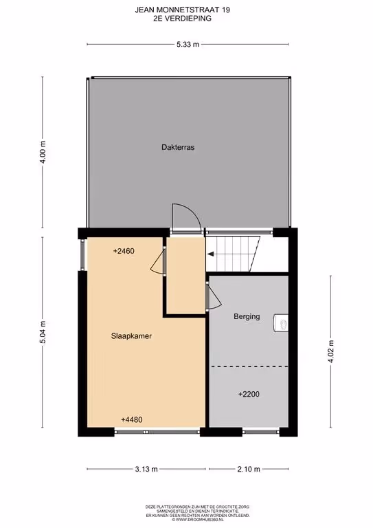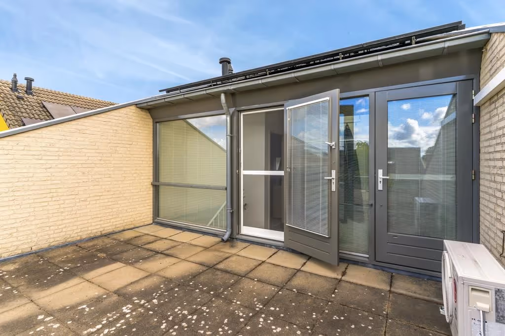 Middels een vaste trap is de 2e verdieping te bereiken. Op deze verdieping ligt een ruime 4e slaapkamer, een aparte berging en een heerlijk ruim dakterras van maar liefst 25m². In de kamer die als berging in gebruik is, zit tevens een vliering, waardoor je nog meer bergruimte hebt. Ook bevinden zich hier de technische installaties, met de WTW (warmteterugwin) unit en CV combiketel (Nefit Trendline HRC, 2016, eigendom).