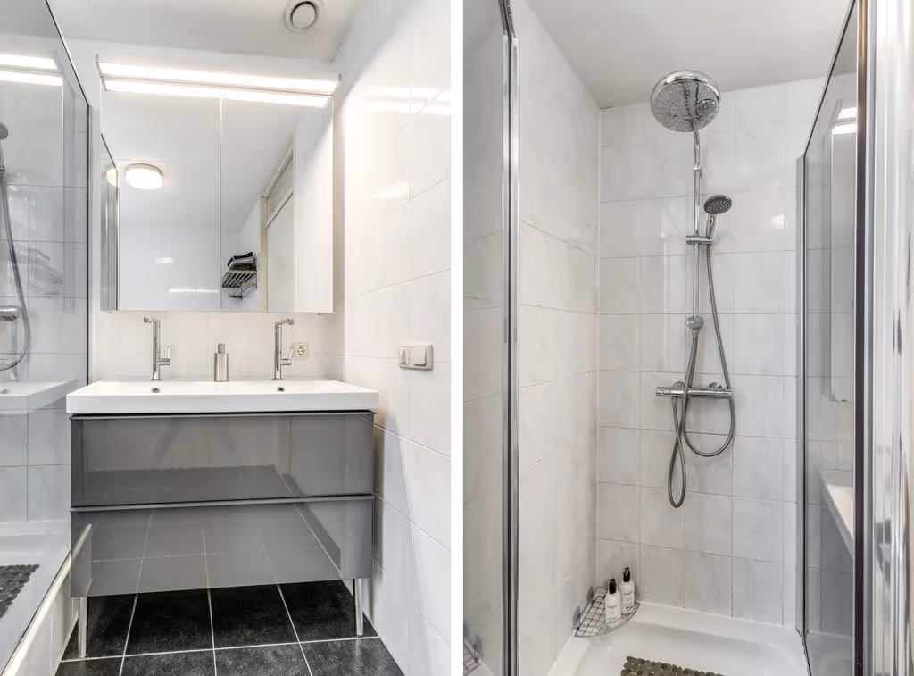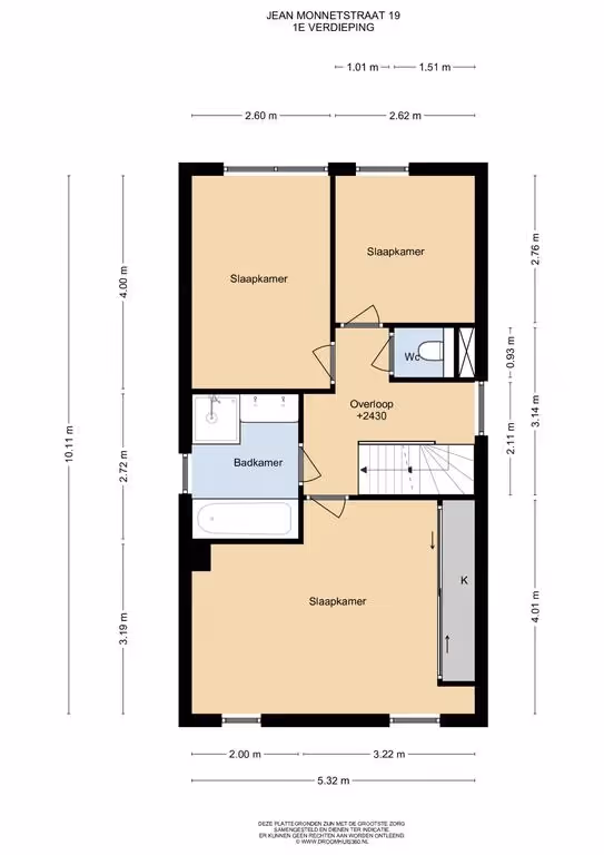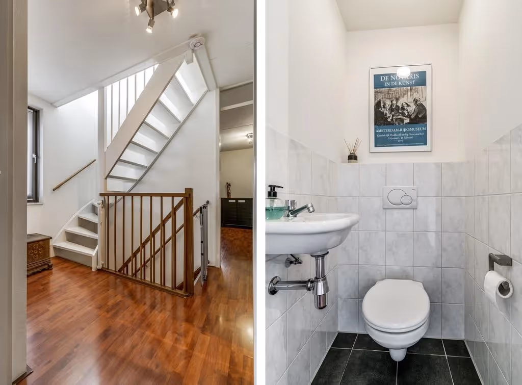 Via de overloop op de 1e verdieping zijn 3 slaapkamers, een apart toilet en de badkamer bereikbaar. De hoofdslaapkamer, gelegen aan de voorzijde van het woonhuis, is zeer royaal. Alle slaapkamers hebben een keurig niveau van afwerking, met o.a. laminaatvloeren. Net als op de begane grond zijn alle kozijnen uitgevoerd in hardhout en met HR++ beglazing. De moderne badkamer is van alle gemakken voorzien, met een ligbad, een douchecabine en een modern wastafelmeubel met dubbele wastafel.