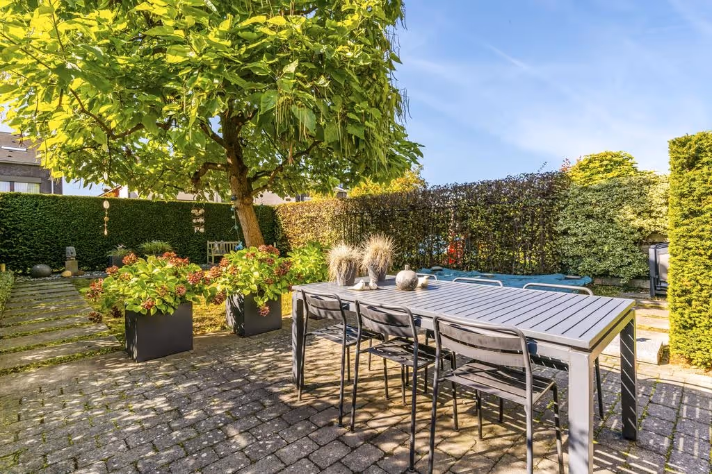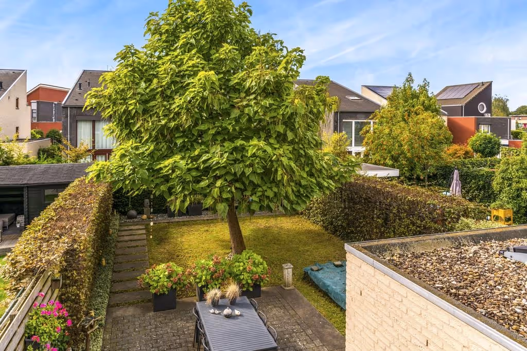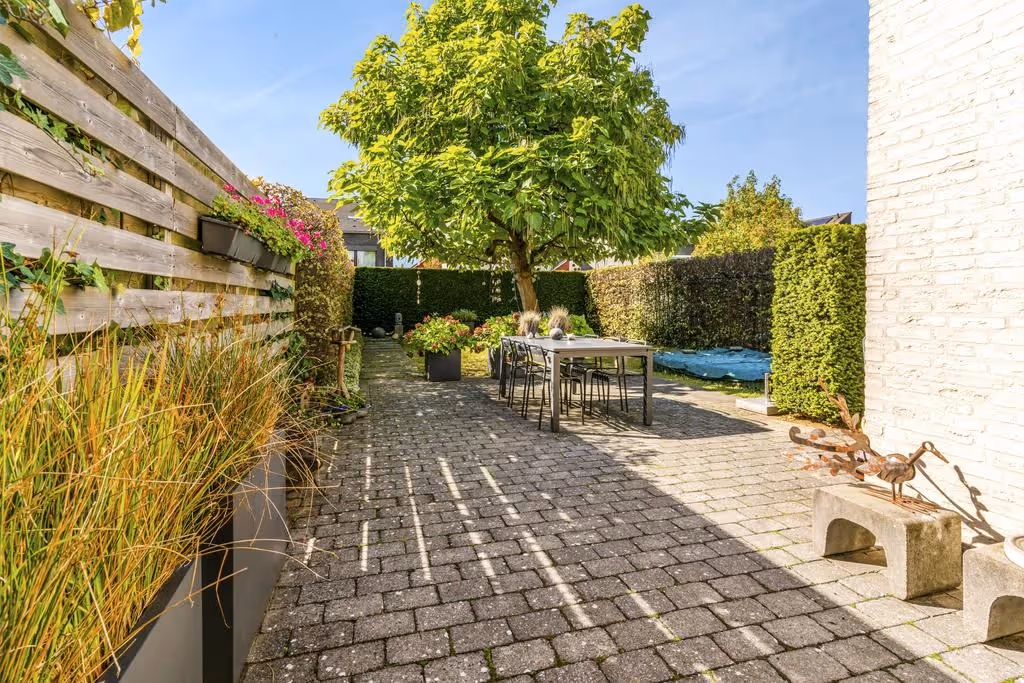 De achtertuin van dit fijne woonhuis is keurig netjes aangelegd en heeft in het midden een prachtige boom, die zowel voor privacy als voor wat schaduw op zonnige dagen zorgt. Verder is er een groot terras, een gazon en is de tuin geheel omheind. Aan de voorzijde beschikt het perceel over een oprit, geschikt voor meerdere voertuigen.