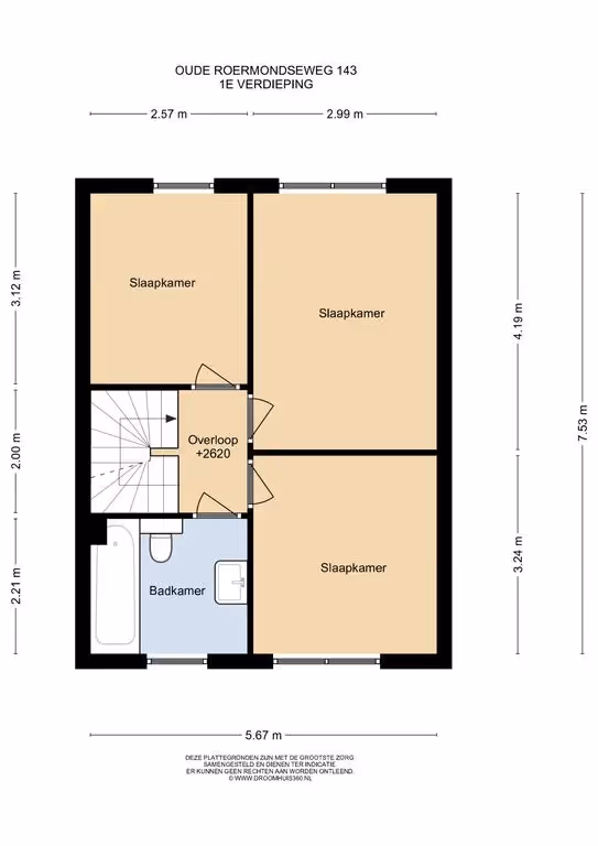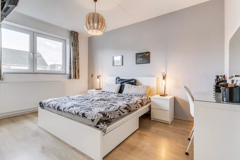Via de overloop zijn 3 slaapkamers en de badkamer toegankelijk. Deze badkamer beschikt over een ligbad met douchecombinatie, een 2e toilet en een wastafelmeubel. Alle 3 de slaapkamers hebben een keurig niveau van afwerking, met laminaatvloeren en kunststof kozijnen met HR++ beglazing.