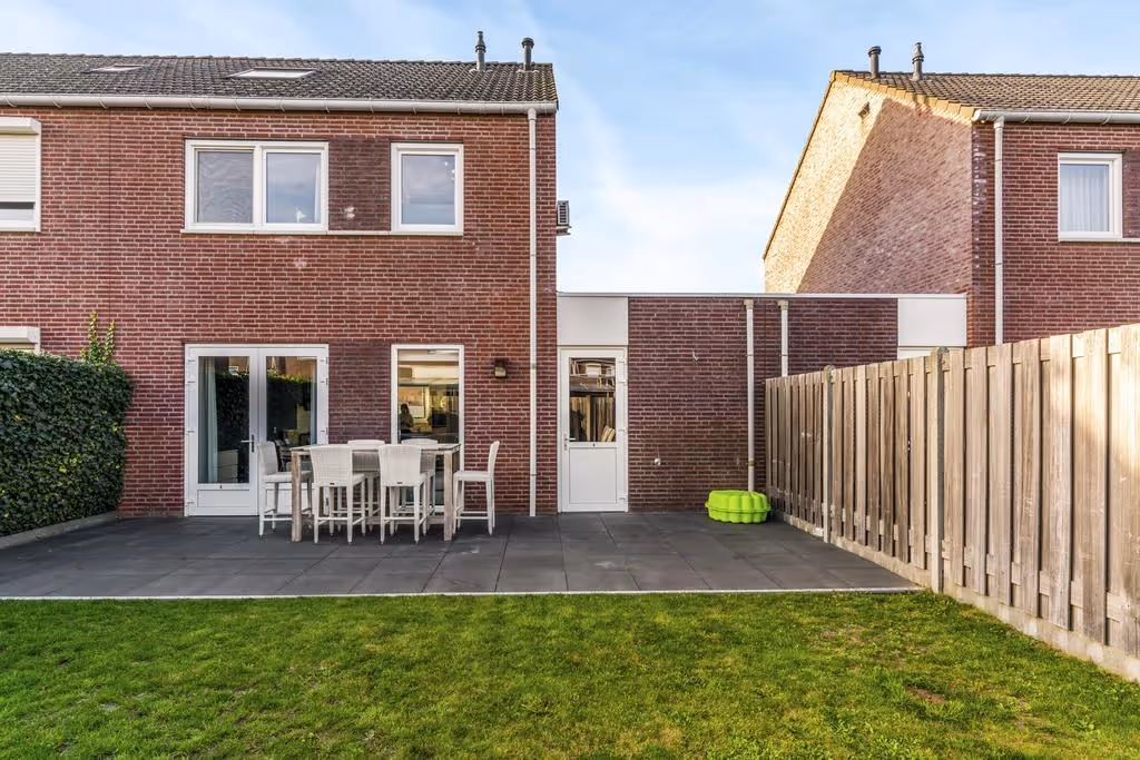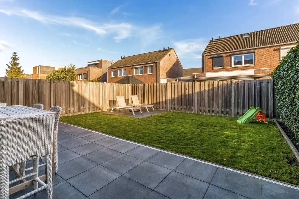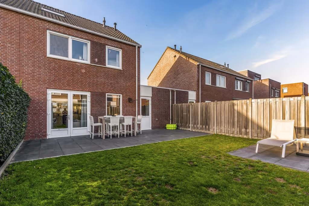 Deze keurige 2-onder-1-kap woning heeft een prima achtertuin. Deze tuin is netjes aangelegd, met een groot terras en een gazon. Tenslotte heeft de woning een ruime garage, waar de aansluitpunten voor het witgoed zitten.