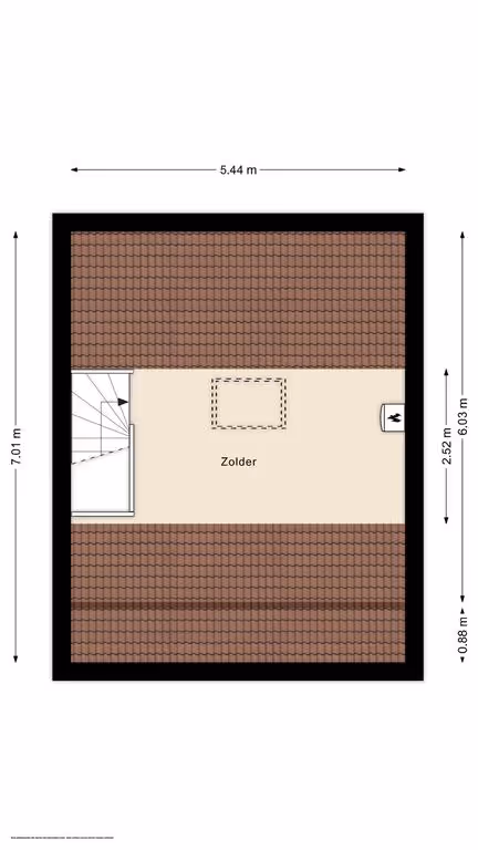 Via een vaste trap is de zolderverdieping te bereiken. Deze is nu vooral als berg- en wasruimte in gebruik, maar bevat een groot dakraam, waardoor je de ruimte ook eventueel als extra kamer zou kunnen gebruiken. Ook hangt hier de CV combiketel (Bosch, eigendom)
