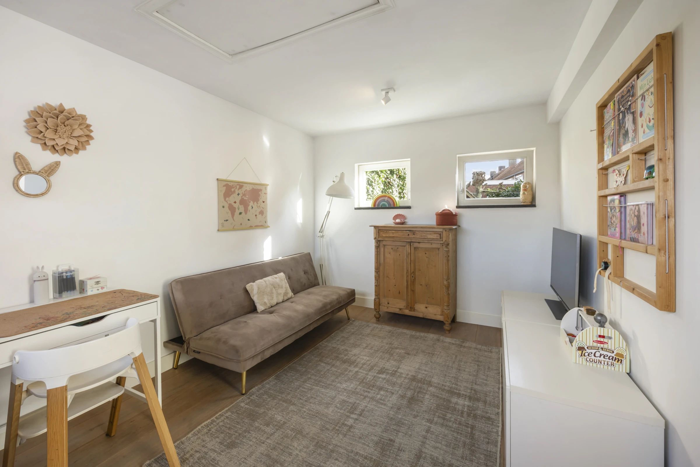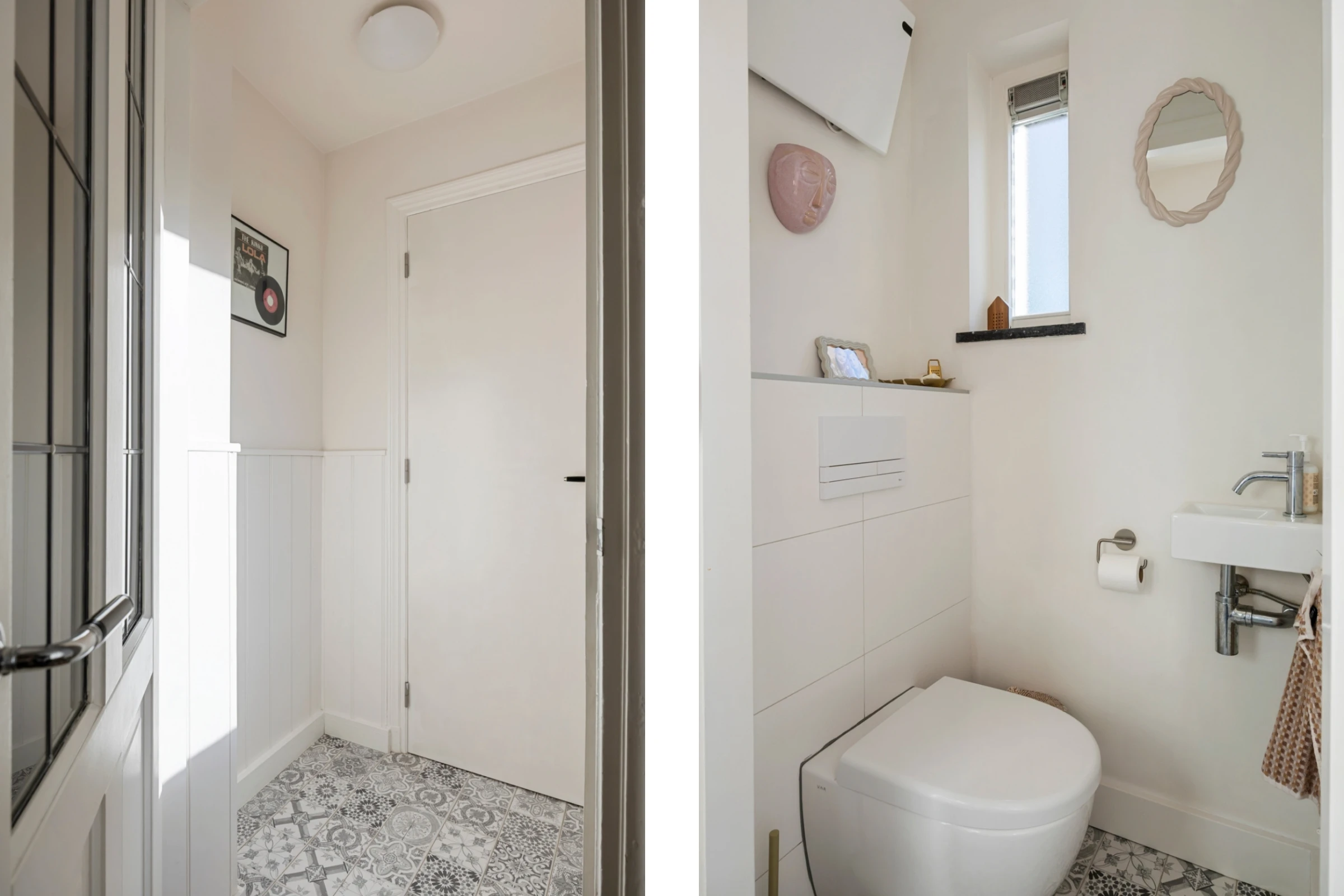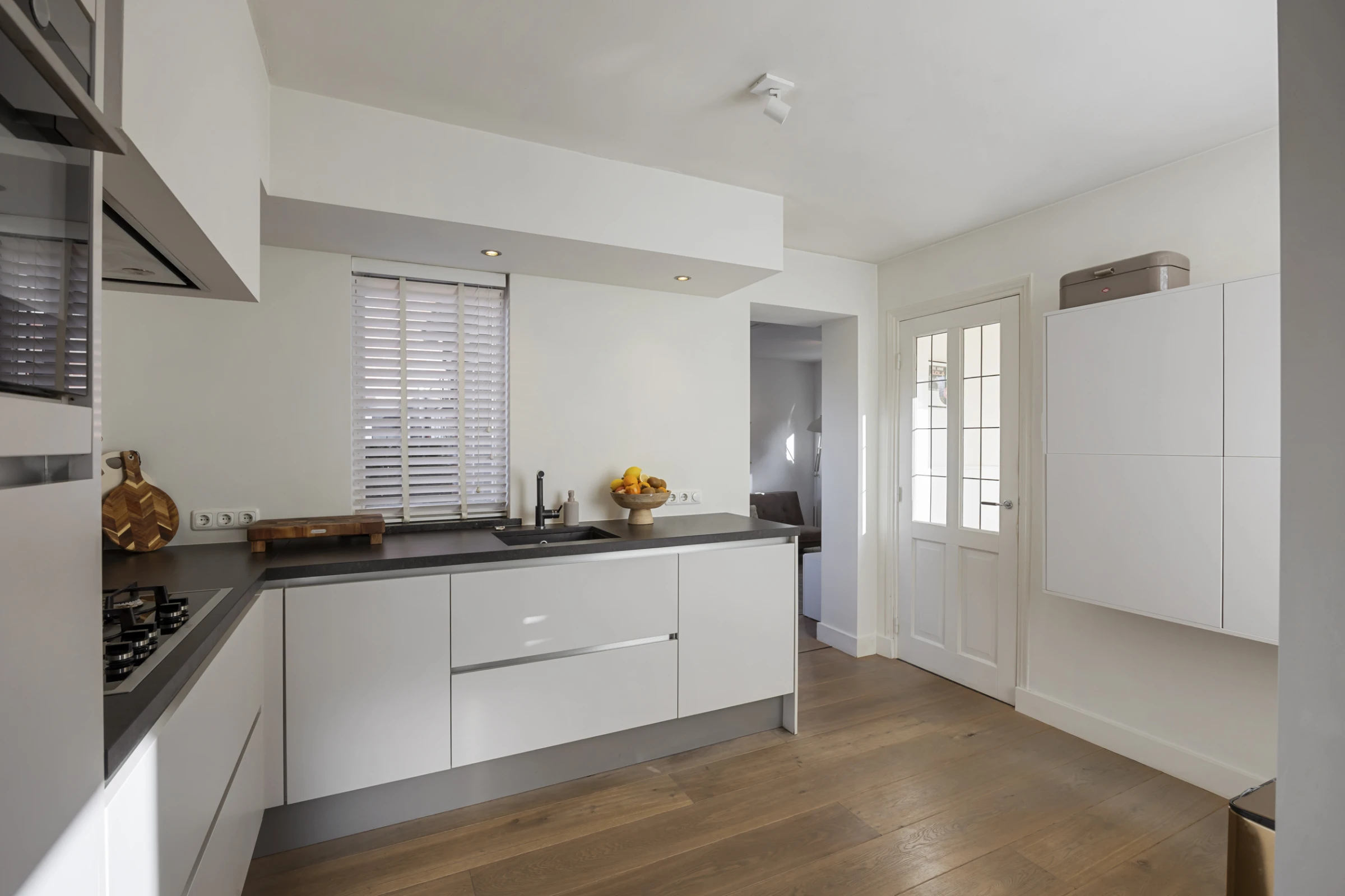 Je komt binnen in de entreehal van dit sfeervolle woonhuis (met moderne meterkast en voorzien van glasvezel) en deze hal biedt toegang tot de charmante woonkamer. Deze woonkamer is een lichte en sfeervolle ruimte met een mooie, houten vloer, een gezellige (inbouw) houtkachel en dubbele deuren die in verbinding staan met de achtertuin. Vanuit de woonkamer is de moderne keuken toegankelijk. Deze heeft veel werkruimte en beschikt over de volgende inbouwapparatuur: een 5-pits gasfornuis met afzuigkap, koelkast, combi-oven en vaatwasser. Vanuit de keuken zijn zowel de speelkamer, als het toilet te bereiken. Het toilet is netjes en voorzien van een fonteintje. De speelkamer is een ruime extra kamer, met veel lichtinval en net zo’n uitstekend niveau van afwerking, als de rest van het huis. Deze speelkamer kan uiteraard ook prima fungeren als thuiswerkplek of slaapkamer op de begane grond.