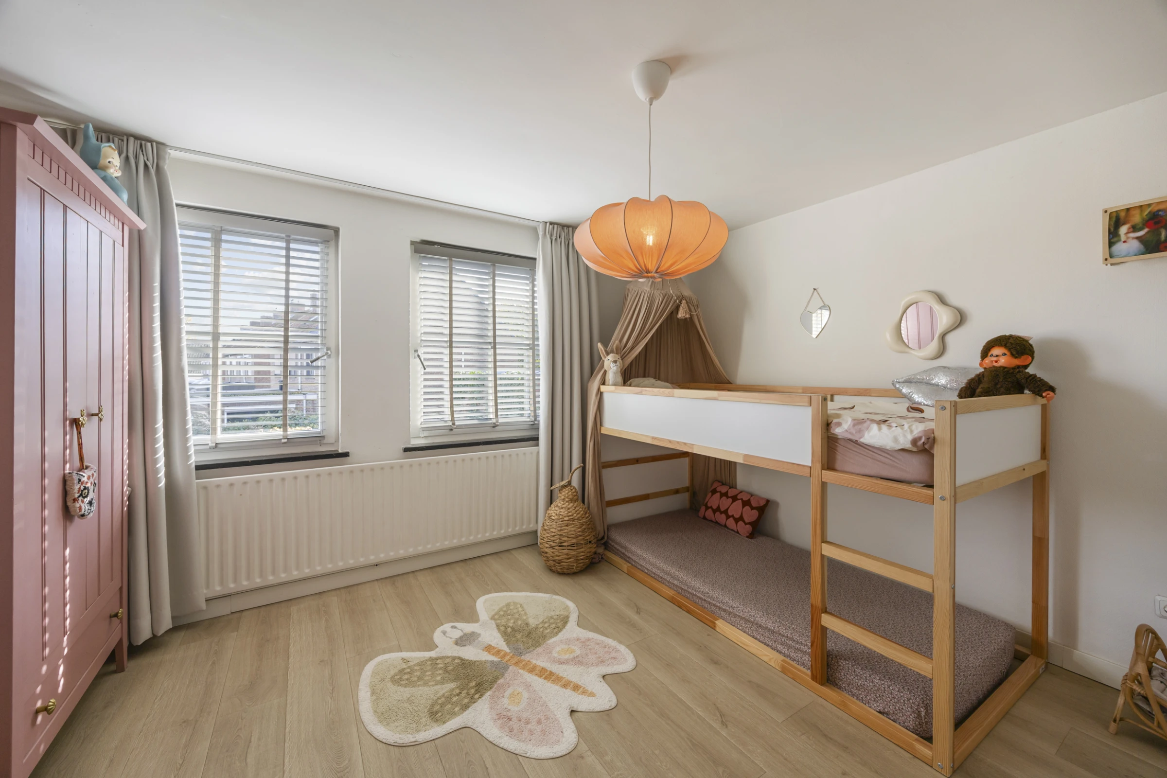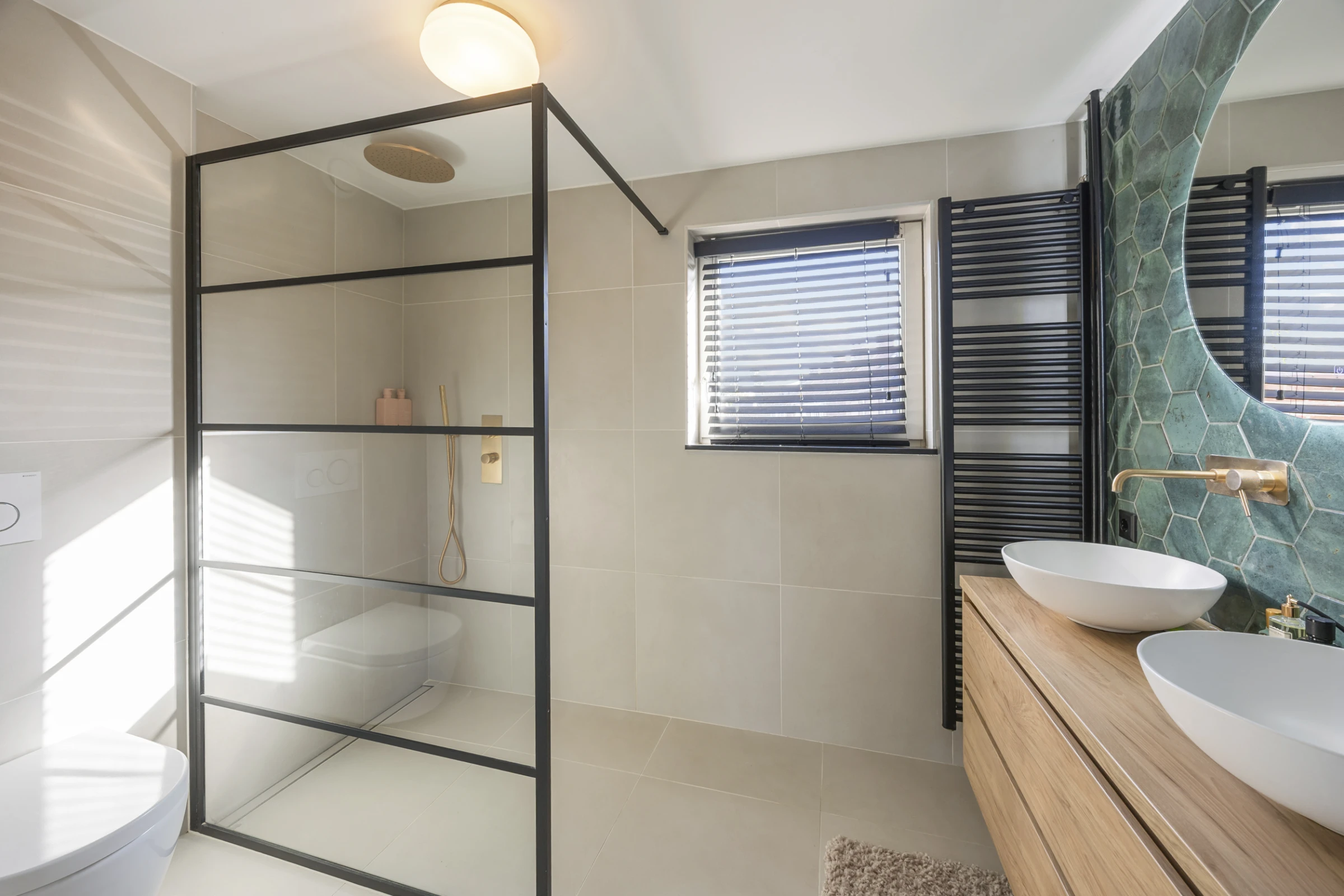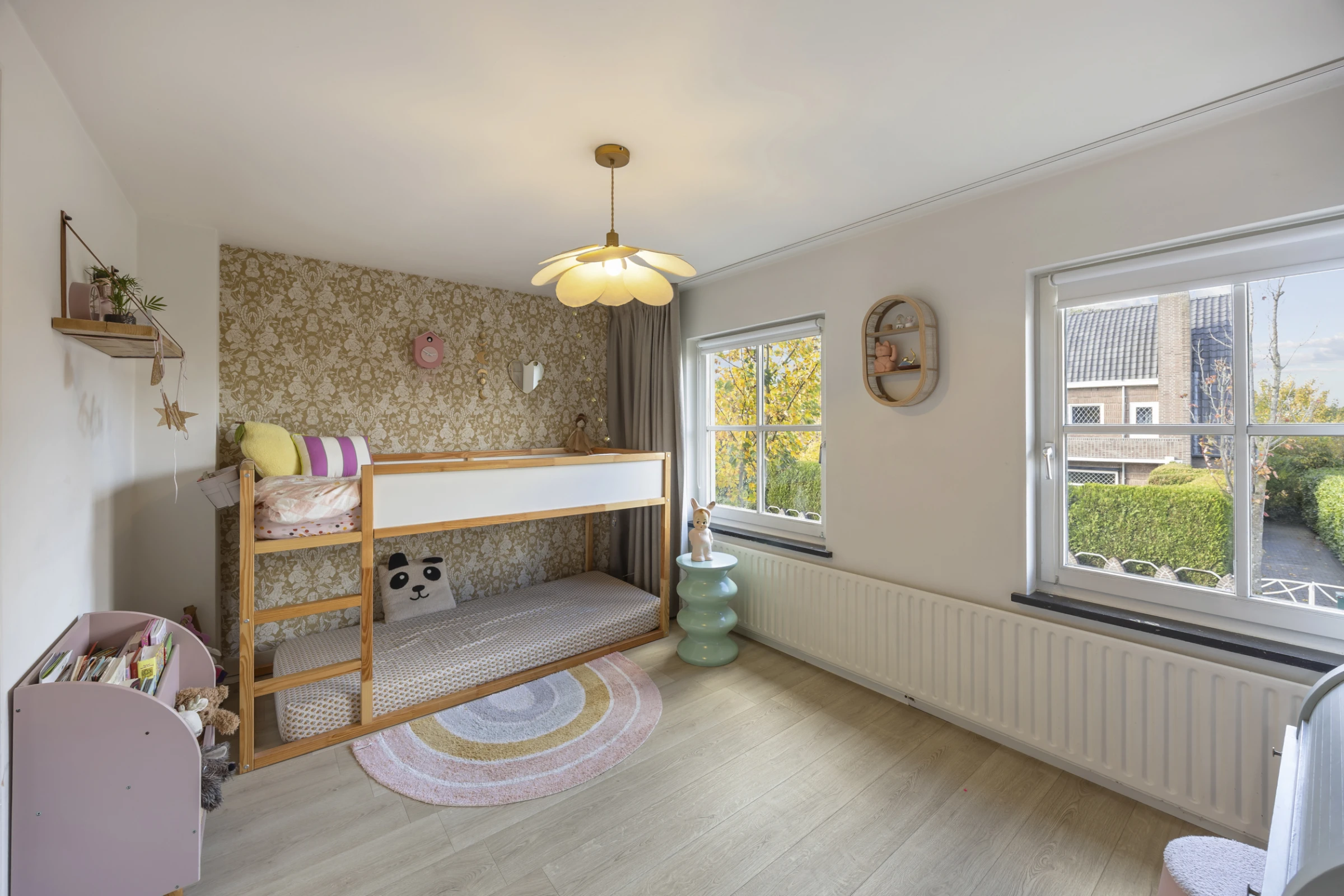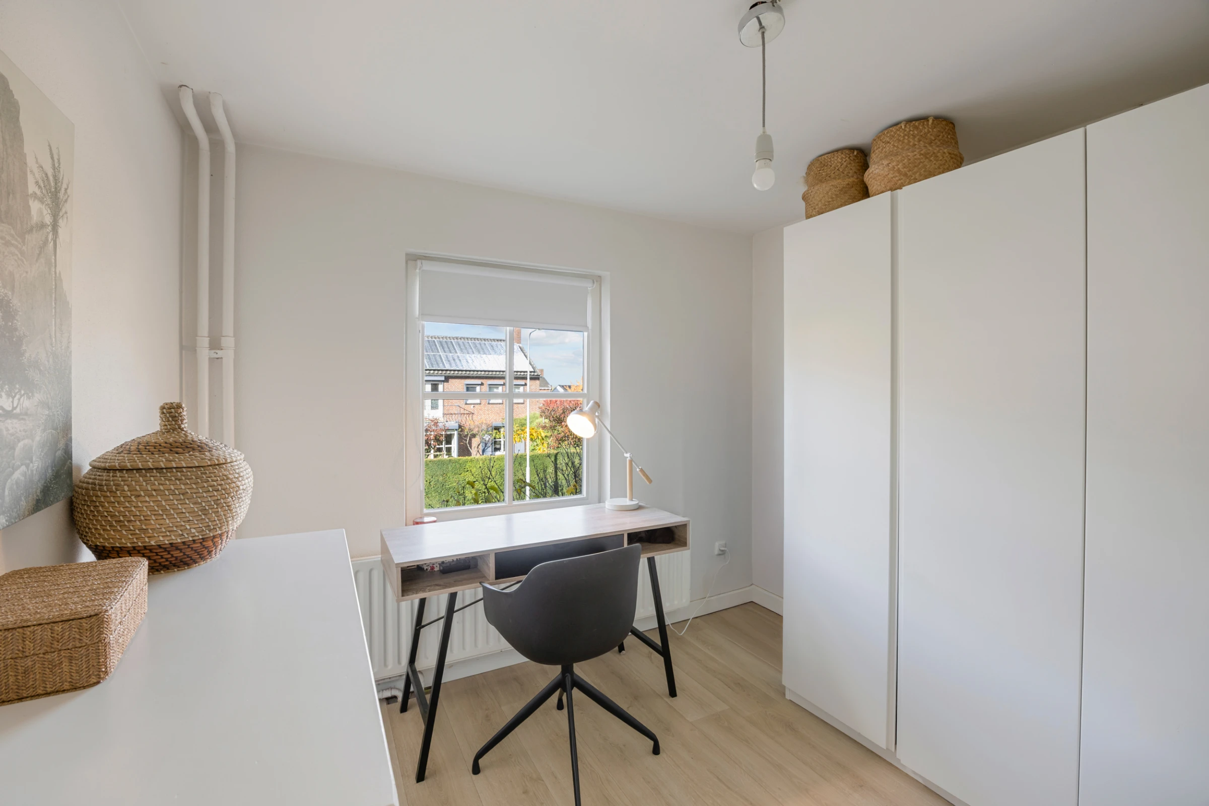 Via de overloop op de 1e verdieping zijn 3 ruime slaapkamers en de stijlvolle badkamer toegankelijk. Deze badkamer uit 2022 herbergt een inloopdouche, een 2e toilet en een wastafelmeubel met dubbele wastafel. Het stijlvolle tegelwerk maakt deze ruimte helemaal af. Van de 3 slaapkamers, beschikken de 2 grootste over inbouwkasten. Alle 3 de kamers hebben een keurig niveau van afwerking met laminaatvloeren en de kozijnen zijn voorzien van HR++ beglazing.