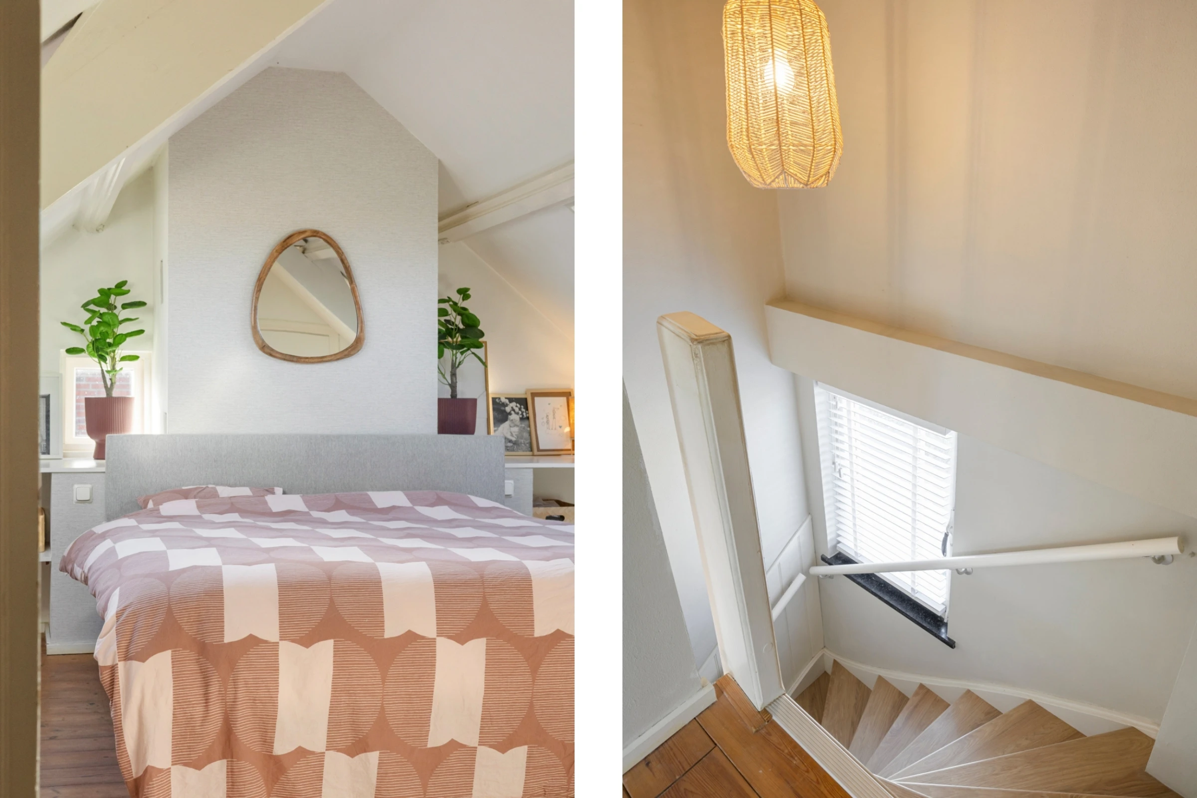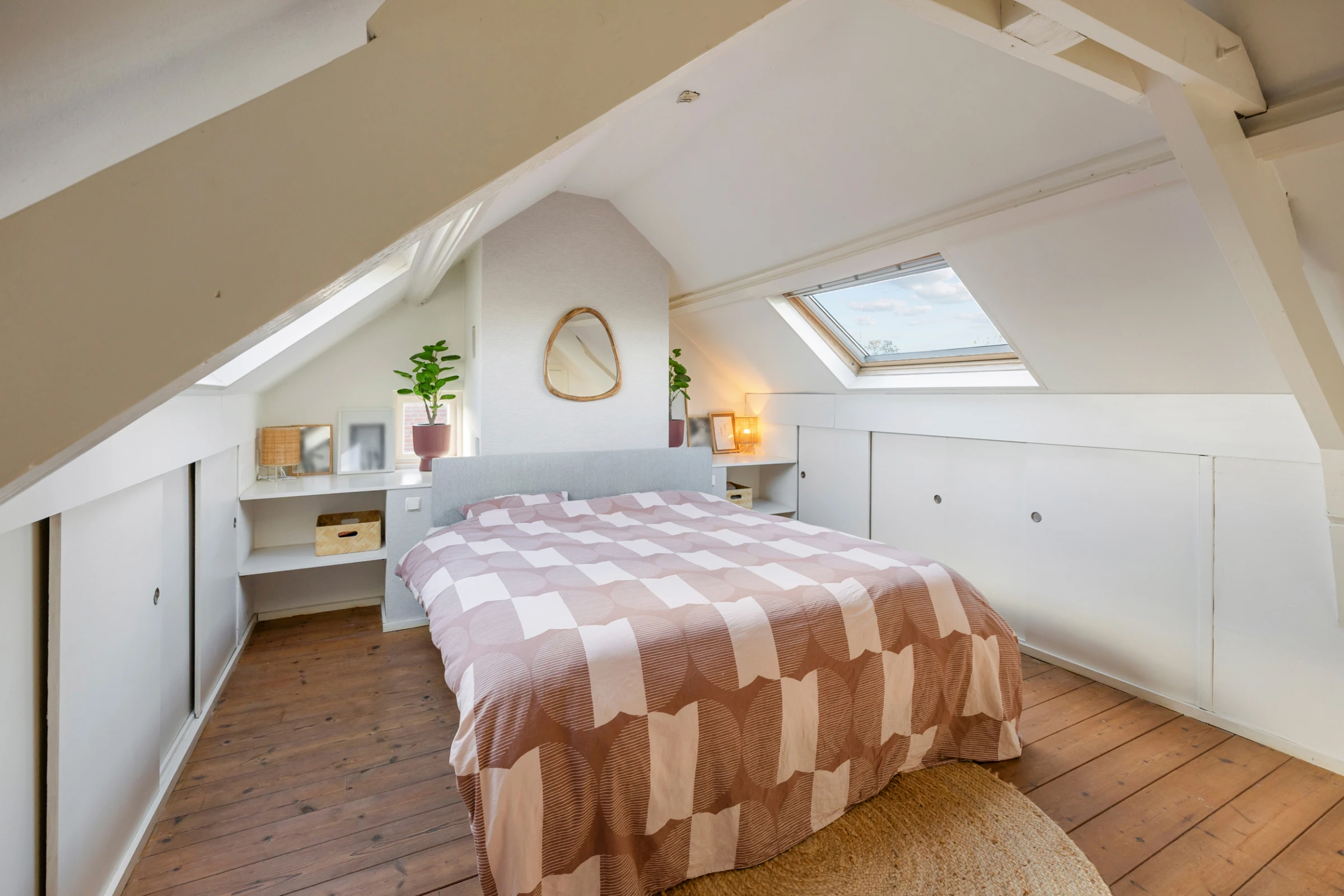 Middels een vaste trap is de zolderverdieping bereikbaar. Hier ligt de 4e slaapkamer en een aparte bergruimte, met de aansluitpunten voor het witgoed en de CV combiketel (Intergas, 2017, eigendom). Tenslotte zijn in de dakschuinte van de slaapkamer aan beide zijden inbouwkasten, met veel extra bergruimte.