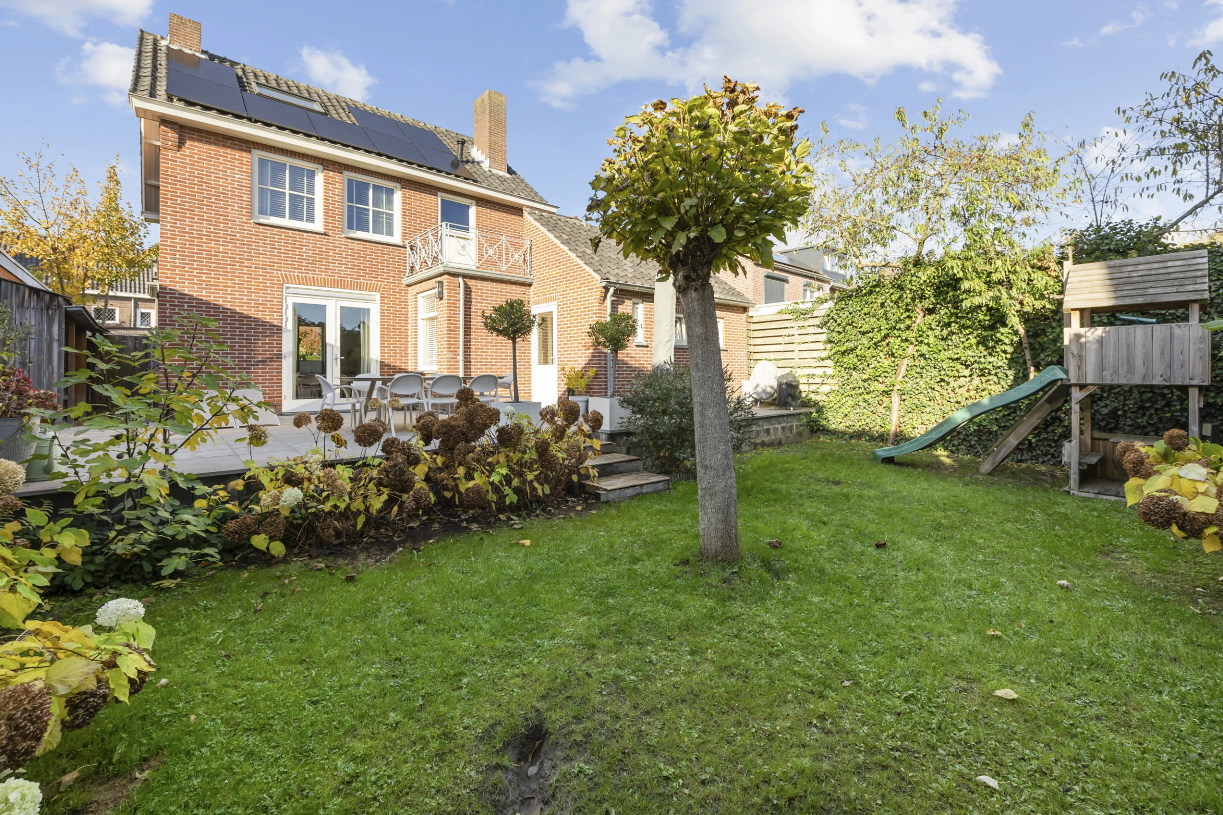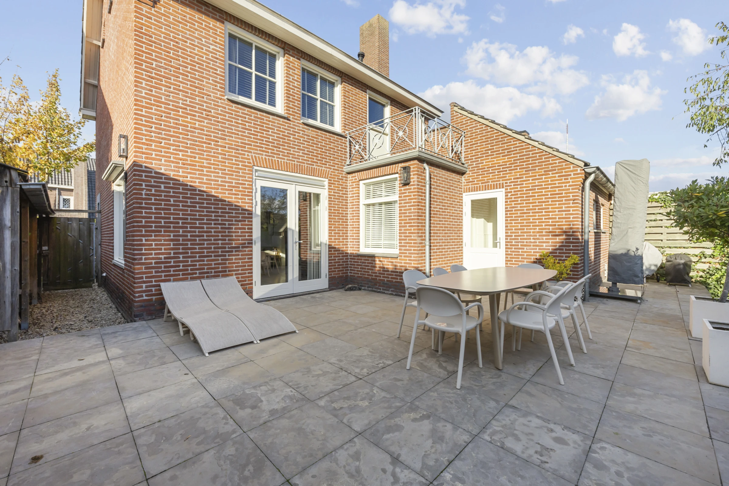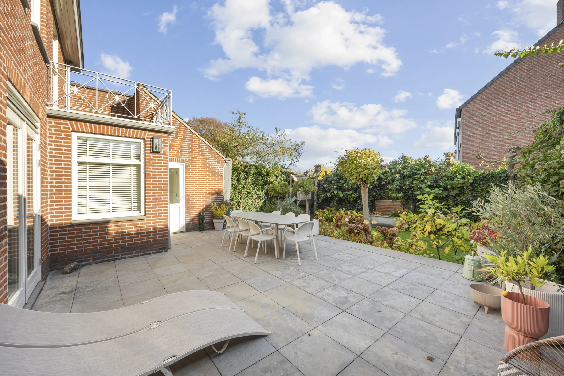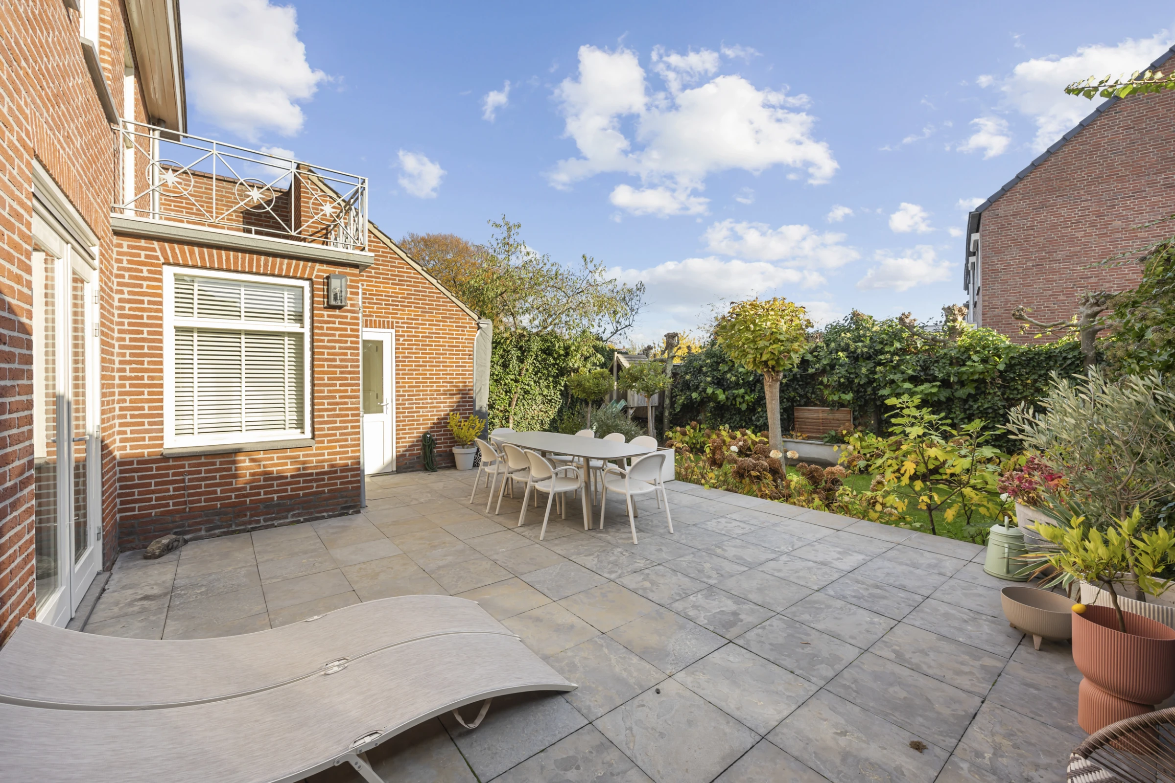 Tenslotte heeft dit sfeervolle woonhuis nog een heerlijke, ruime tuin, waar je kunt genieten van de gunstige ligging en veel privacy. Achter de woning ligt een terras over de gehele breedte en naast de woning is een paadje met een eigen achterom. Een trapje omlaag brengt je van het terras naar het gazon en dit speelse niveauverschil maakt de tuin extra bijzonder. Rondom het gazon ligt veel beplanting en de linden aan de achterzijde zorgen voor privacy en beschutting.
