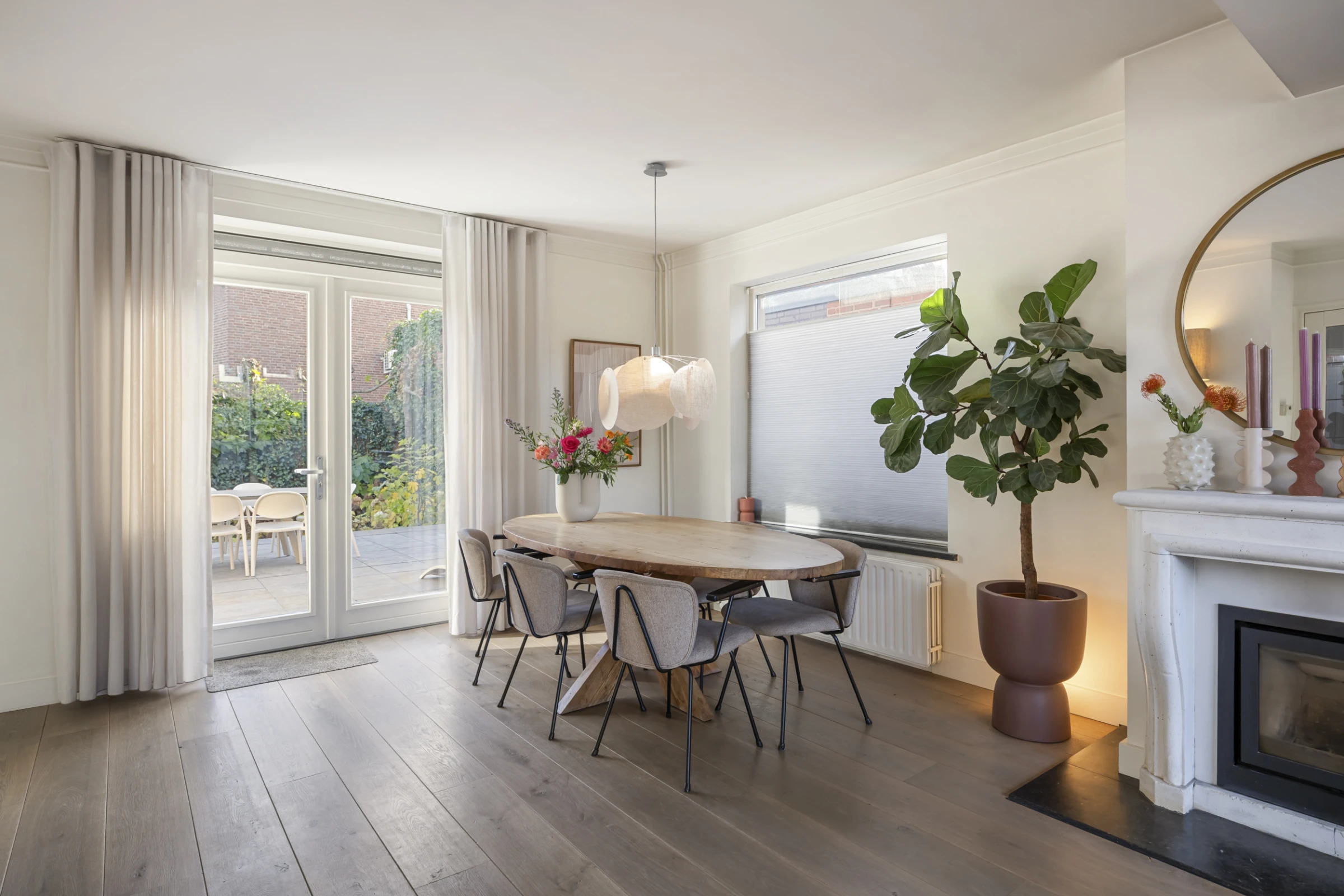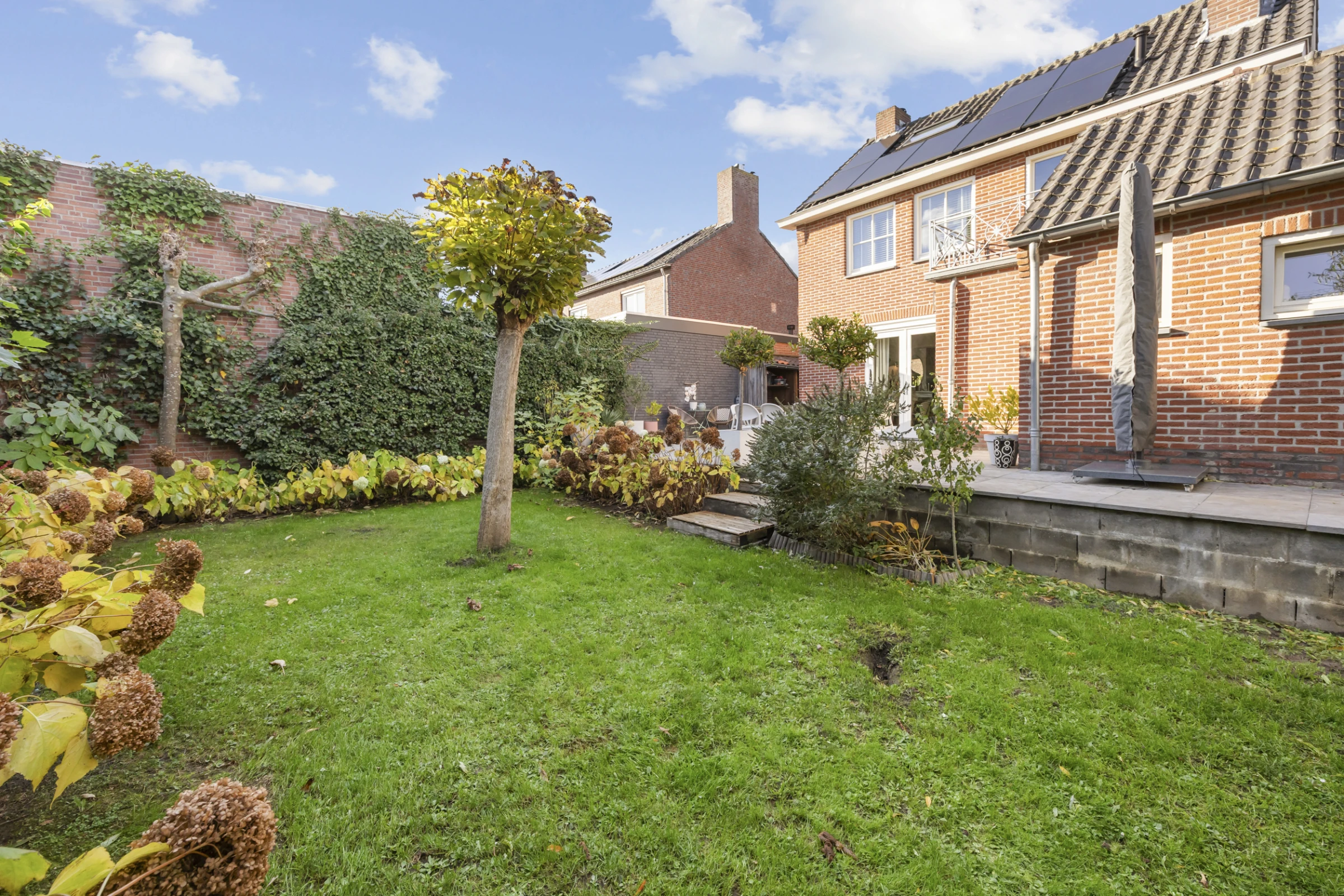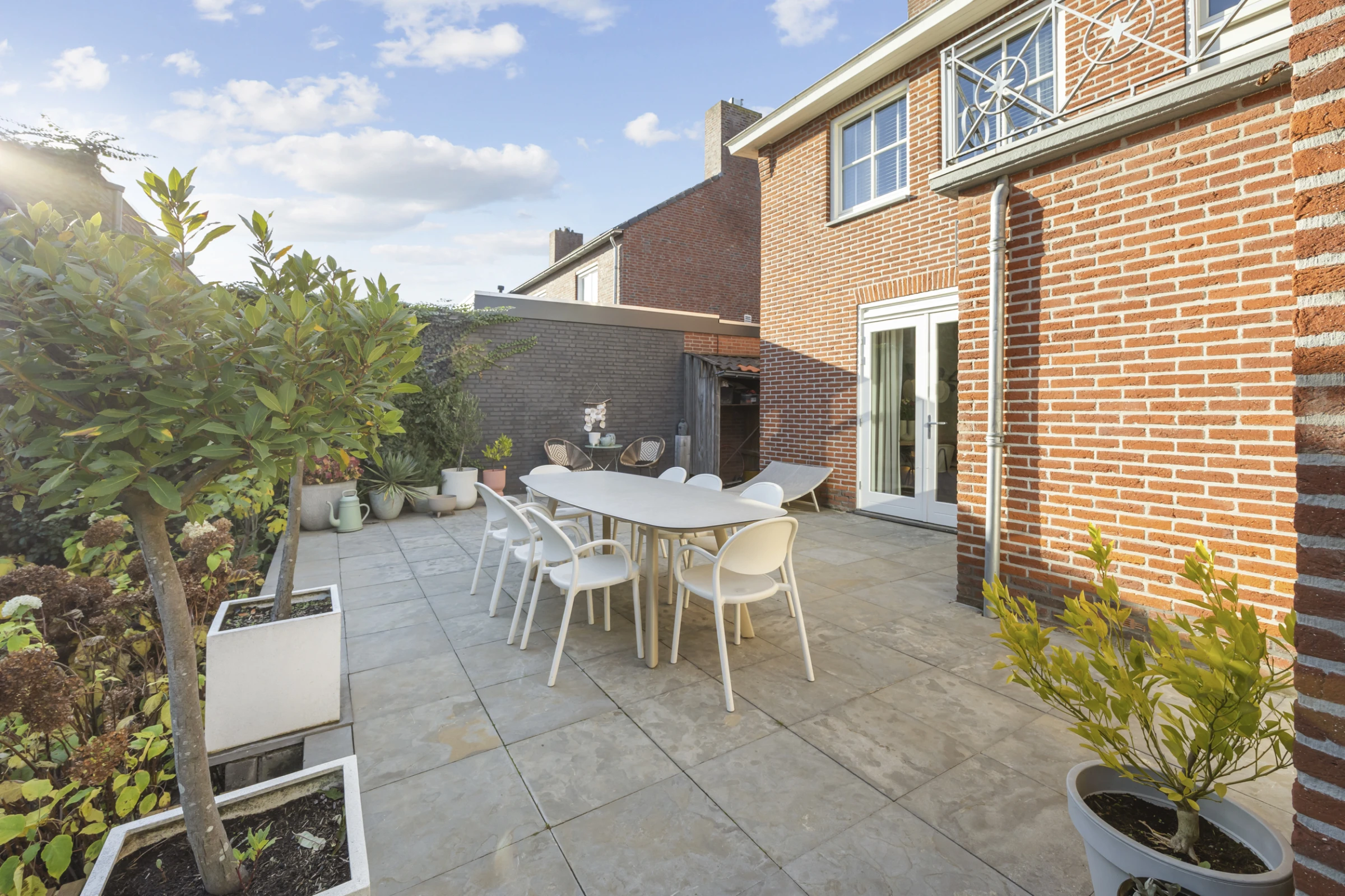 Tenslotte heeft dit sfeervolle woonhuis nog een heerlijke, ruime tuin, waar je kunt genieten van de gunstige ligging en veel privacy. Achter de woning ligt een terras over de gehele breedte en naast de woning is een paadje met een eigen achterom. Een trapje omlaag brengt je van het terras naar het gazon en dit speelse niveauverschil maakt de tuin extra bijzonder. Rondom het gazon ligt veel beplanting en de linden aan de achterzijde zorgen voor privacy en beschutting.