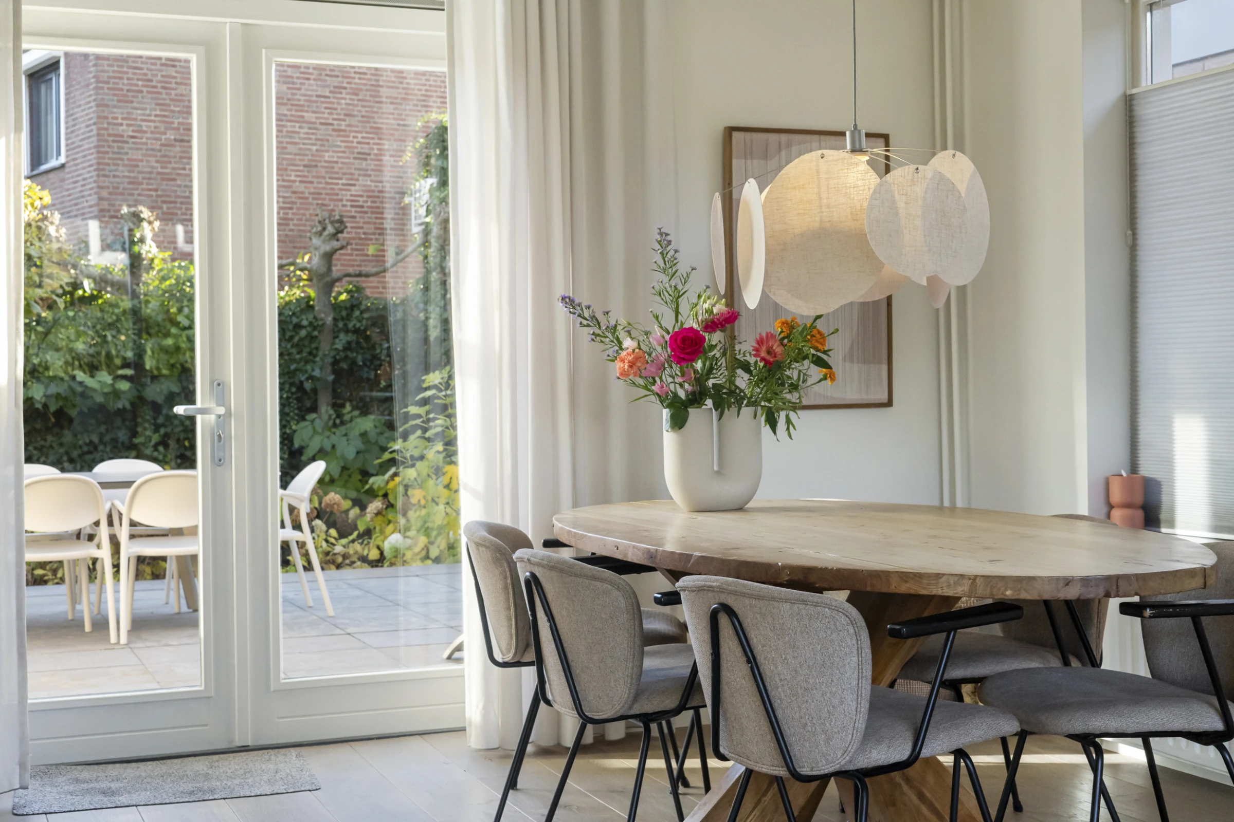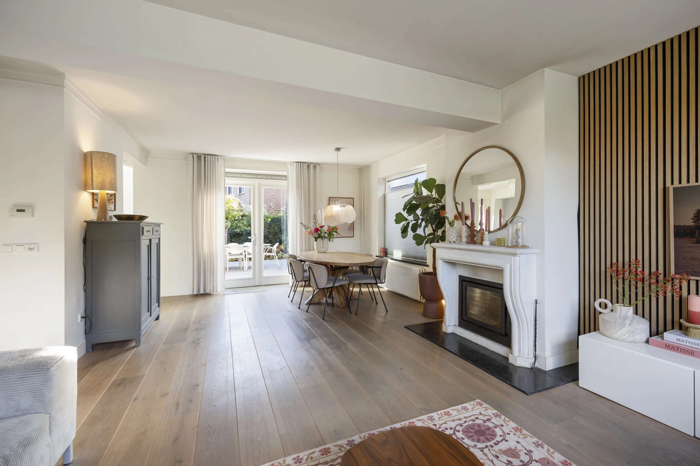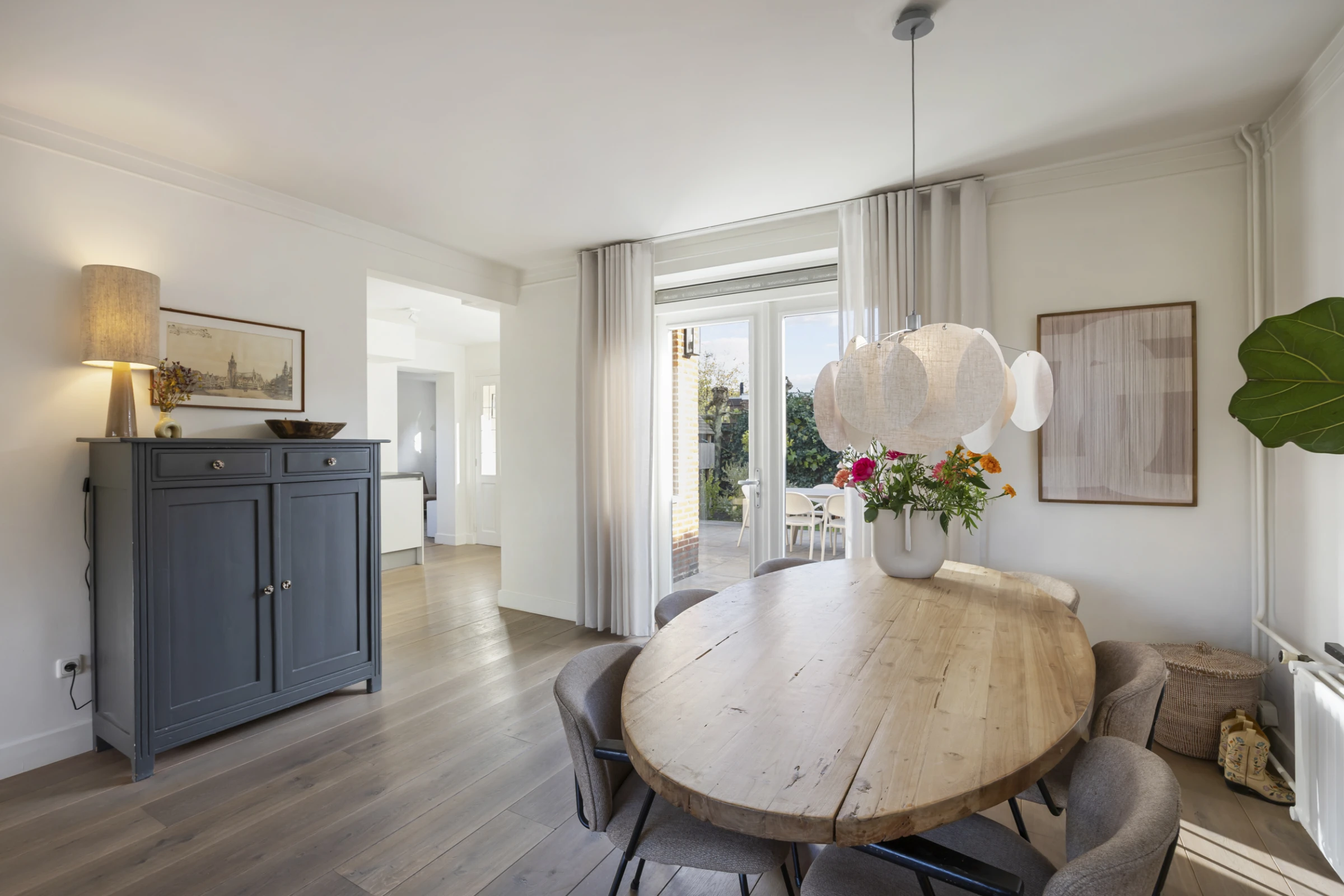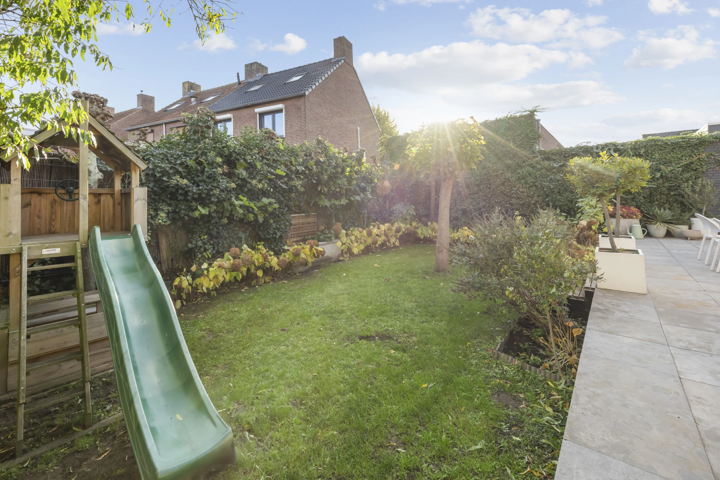 Tenslotte heeft dit sfeervolle woonhuis nog een heerlijke, ruime tuin, waar je kunt genieten van de gunstige ligging en veel privacy. Achter de woning ligt een terras over de gehele breedte en naast de woning is een paadje met een eigen achterom. Een trapje omlaag brengt je van het terras naar het gazon en dit speelse niveauverschil maakt de tuin extra bijzonder. Rondom het gazon ligt veel beplanting en de linden aan de achterzijde zorgen voor privacy en beschutting.