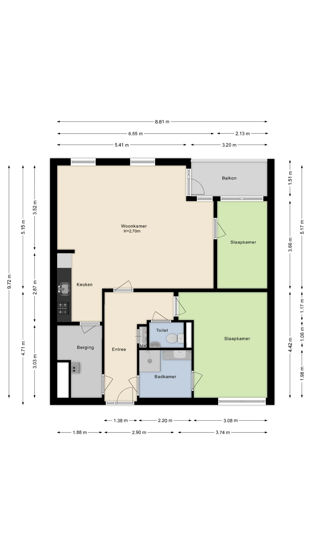 Parkeren is mogelijk op 1 van de 2 privé parkeerplaatsen, onder en naast het complex. Tevens heeft dit appartement nog een eigen berging, gelegen in het souterrain.