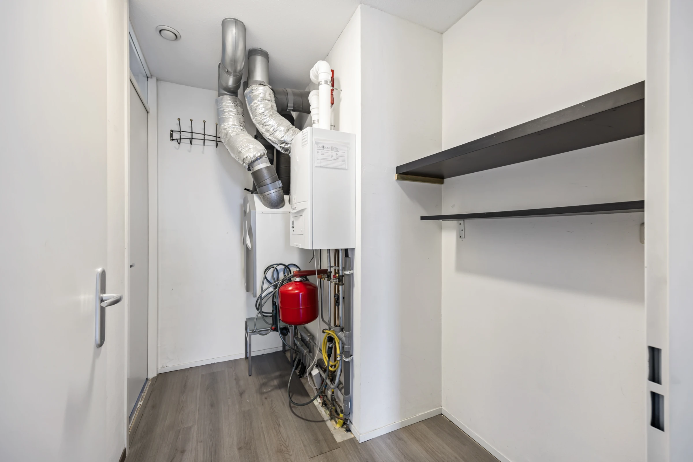 Het appartement is gelegen op de begane grond van dit complex. Entree in de hal met meterkast en toegang tot de diverse vertrekken. Ook ligt in de hal het gastentoilet met fonteintje. De woonkamer is heerlijk licht en heeft een prima niveau van afwerking, met onder andere een nette laminaatvloer. De keuken staat in open verbinding met de woonkamer en deze keuken heeft een opstelling met de volgende inbouwapparatuur; een 4-pits gasfornuis, afzuigkap, koelkast en vaatwasser (2025). Vervolgens is vanuit de keuken de bijkeuken / technische ruimte bereikbaar. Hier bevinden zich de aansluitpunten voor het witgoed, veel extra bergruimte en de CV combiketel (Vaillant, eigendom, bouwjaar 2025) en WTW unit (warmte-terugwin unit). Vanuit de woonkamer is ook de loggia te bereiken. Deze fijne buitenruimte is gelegen op het Noord Westen, waardoor u geniet van de avondzon.