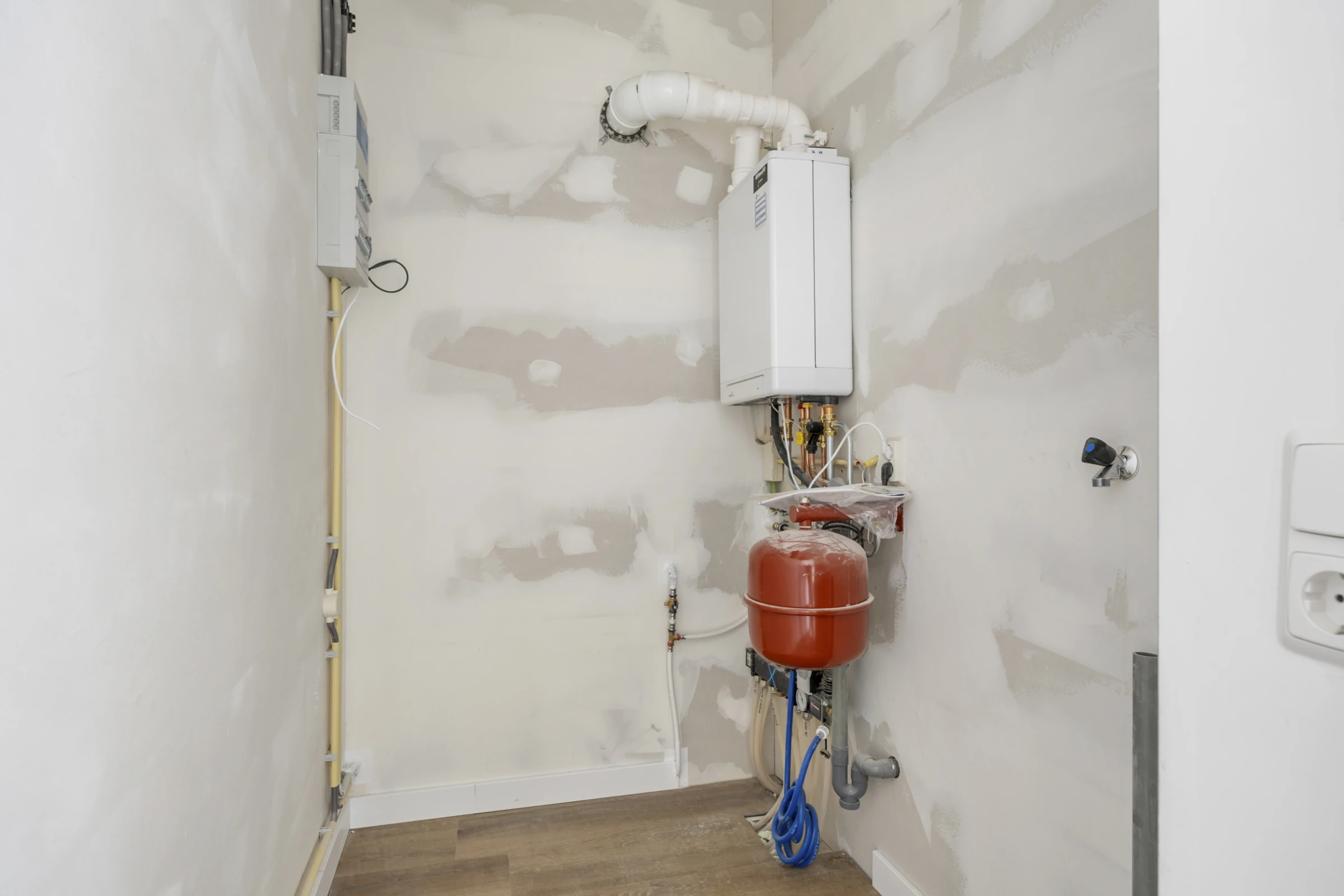 De stijlvolle badkamer is ook nieuw en ongebruikt. Verder beschikt deze over een inloopdouche en wastafelmeubel. Het toilet is apart en ligt naast de badkamer. Voorts heeft het appartement een eigen berging / wasruimte. Deze ligt naast de woonkamer en herbergt de CV combiketel (Intergas, 2025, eigendom) en aansluitpunten voor het witgoed.