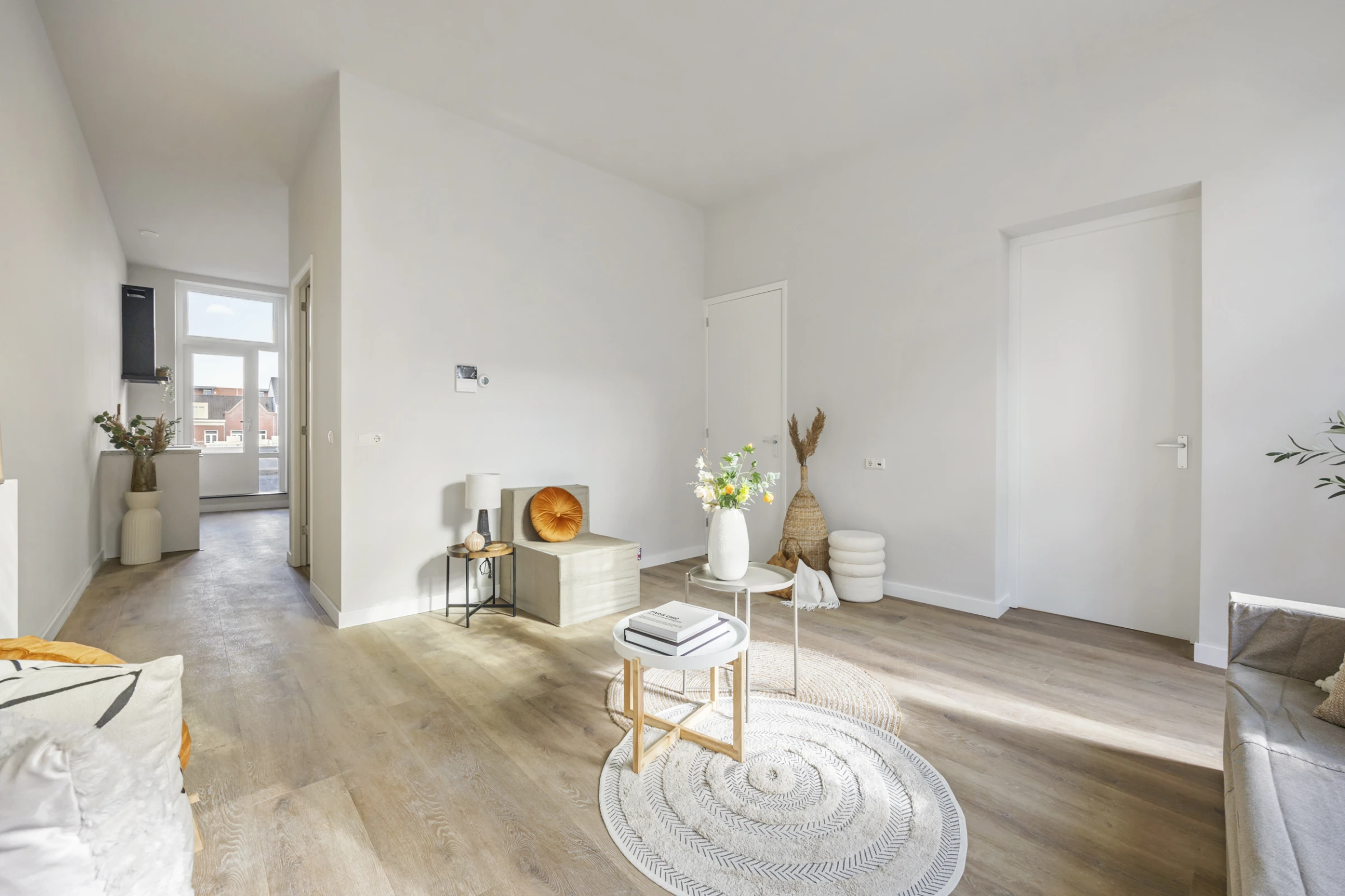 Via de entree van dit appartement kom je in je eigen hal, met toegang naar alle kamers. De woonkamer van dit appartement ligt aan de voorzijde, met mooie hoge ramen, veel lichtinval en zicht op de bruisende Hamstraat. Aan de achterzijde, met zicht op het dakterras, ligt de woonkeuken, met splinternieuw keukenblok voorzien van de volgende inbouwapparatuur: inductiekookplaat, afzuigkap, koelkast, oven en vaatwasser. Verder is de keuken royaal, waardoor je hier makkelijk een eettafel kunt plaatsen. Ook is vanuit de keuken het dakterras toegankelijk, waarover dit appartement beschikt.