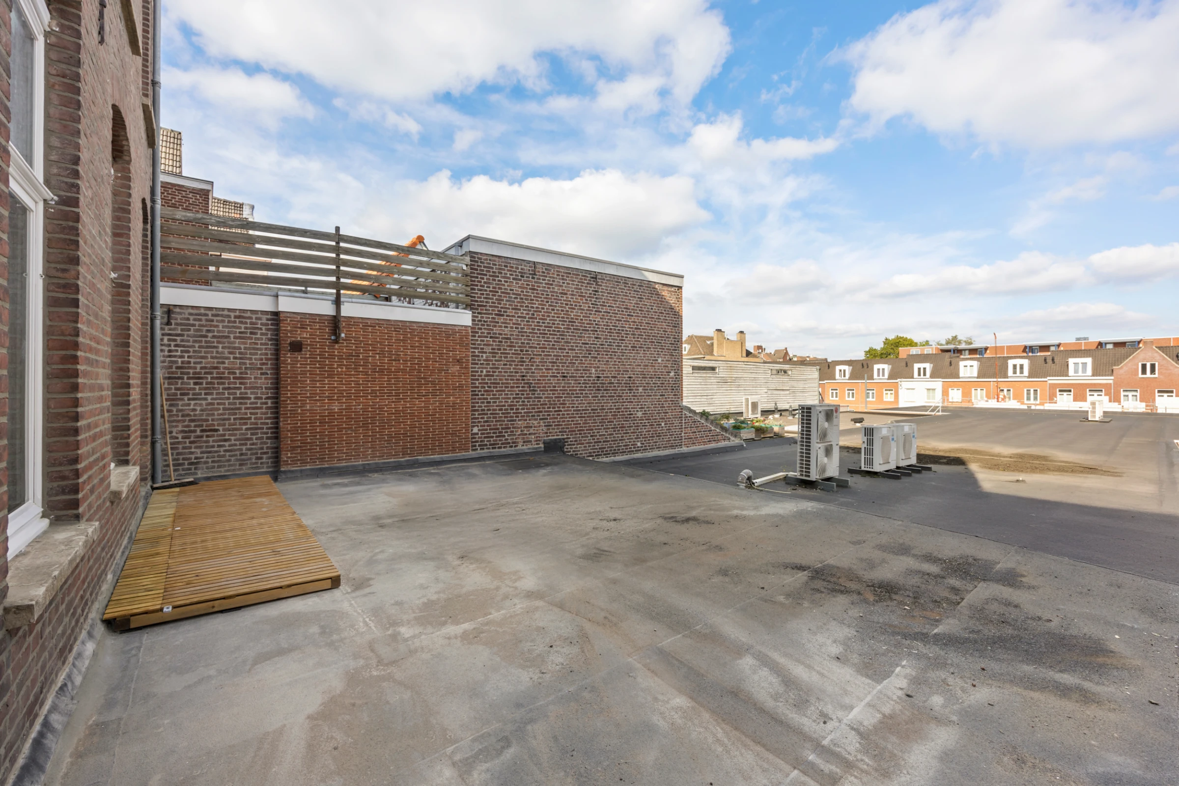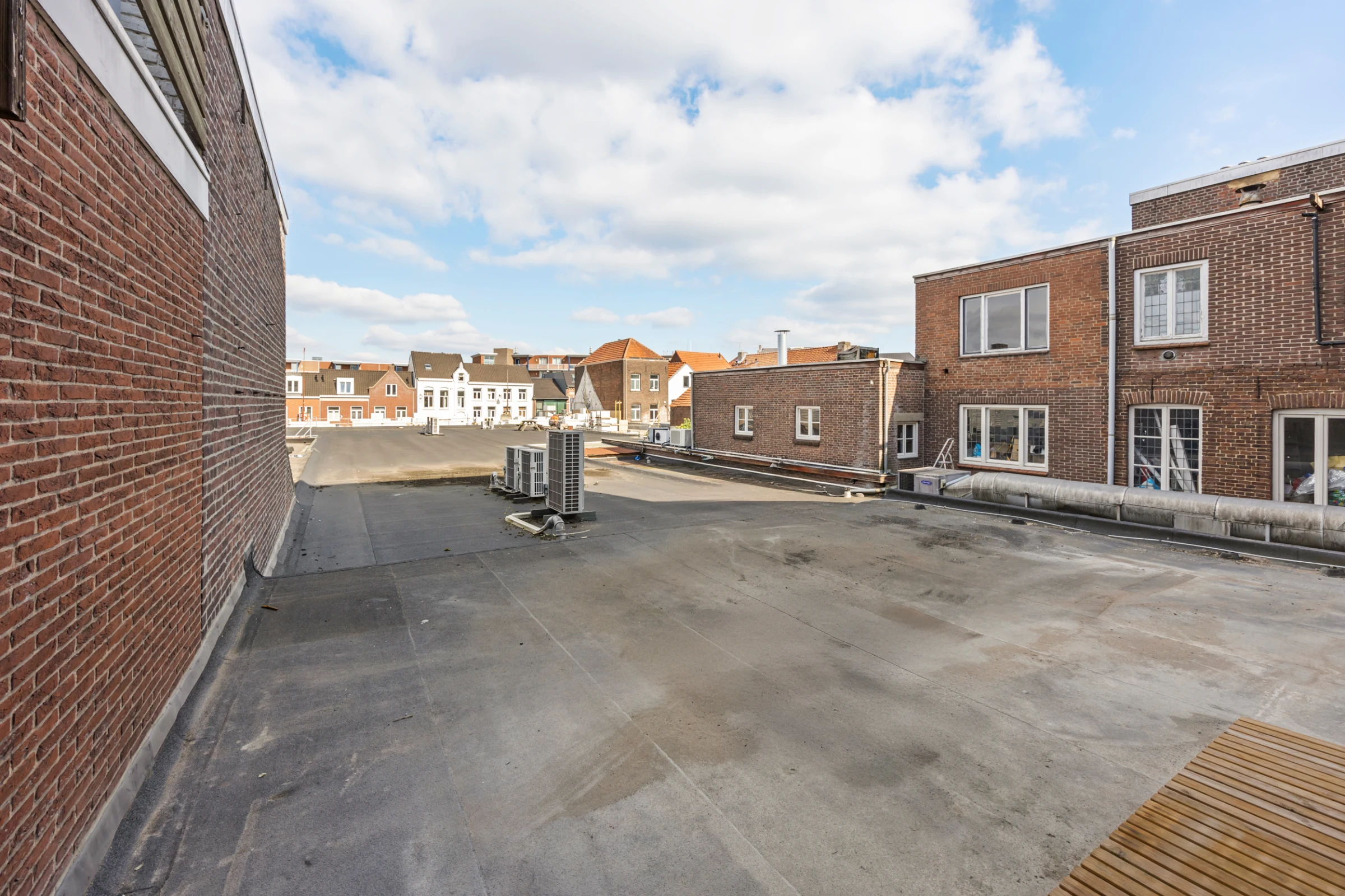 Tenslotte heeft alleen dit appartement zijn eigen buitenruimte / dakterras. Deze is circa 20 tot 25 m² groot en kijkt uit over de daken en stadspanden van de binnenstad.