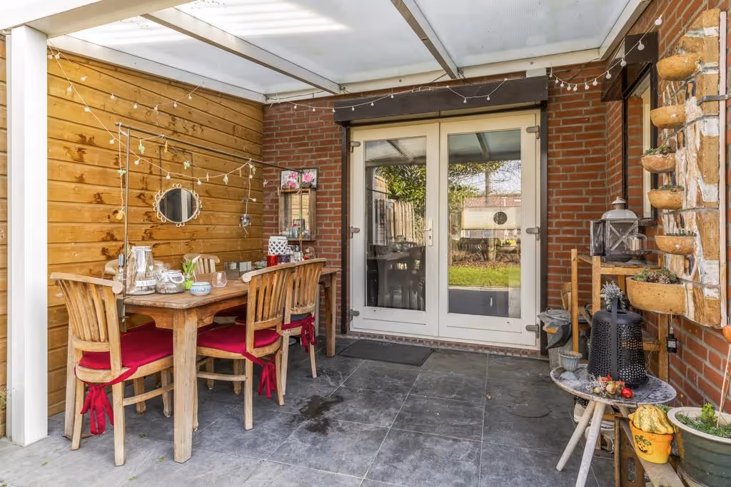 Deze fijne gezinswoning heeft ook nog een gezellig achtertuin, met veel privacy. Deze is keurig netjes aangelegd met een overdekt terras, een gazon en diverse beplanting. De tuin is helemaal omheind met een schutting en heeft een eigen achterom en een stenen tuinberging.