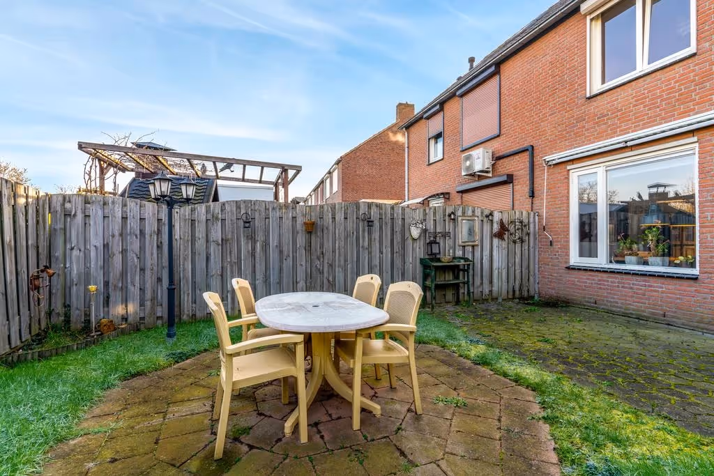 Deze fijne gezinswoning heeft ook nog een heerlijke achtertuin. Deze is keurig netjes aangelegd met een terras en een groot gazon. De tuin is helemaal omheind met een schutting en heeft een eigen achterom en een houten tuinberging.