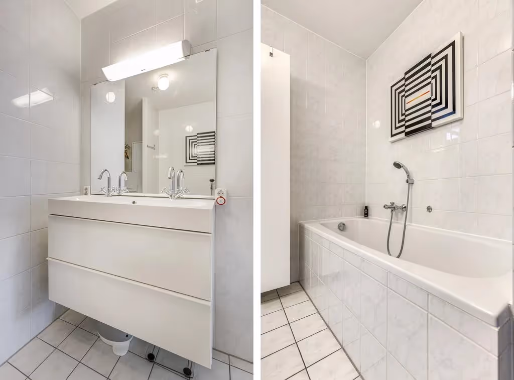 Voorts zijn in het appartement nog de andere kamers bereikbaar, waaronder 2 slaapkamers, de badkamer en een berging. Vanuit de hoofdslaapkamer kan je middels een 3e schuifpui ook het dakterras bereiken. De berging herbergt de aansluitingen voor het witgoed en de CV combiketel (Remeha, eigendom, 2016). De beide slaapkamers van dit fijne penthouse hebben dezelfde mooie vloer en keurige afwerking als de woonkamer en keuken. De badkamer is voorzien van een douche, ligbad, 2e toilet en wastafelmeubel met dubbele wastafel en een designradiator.