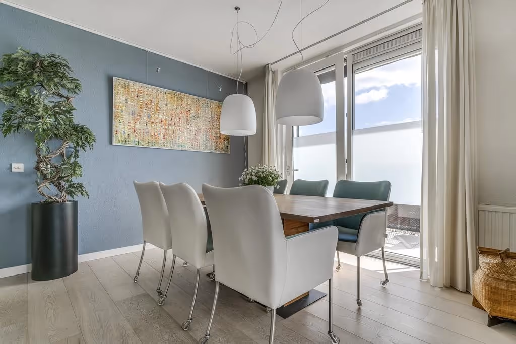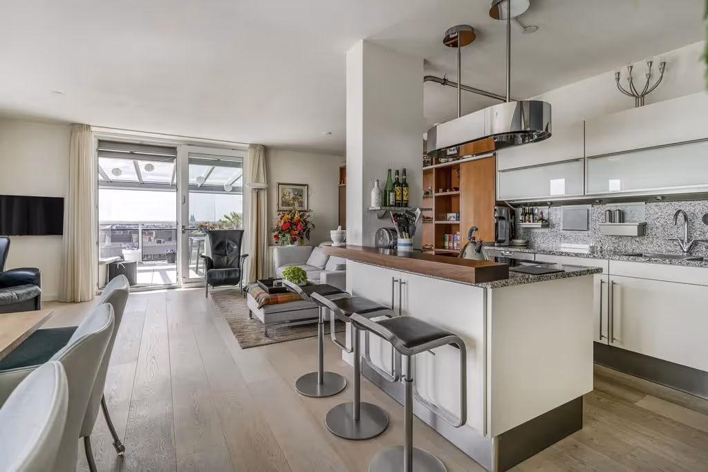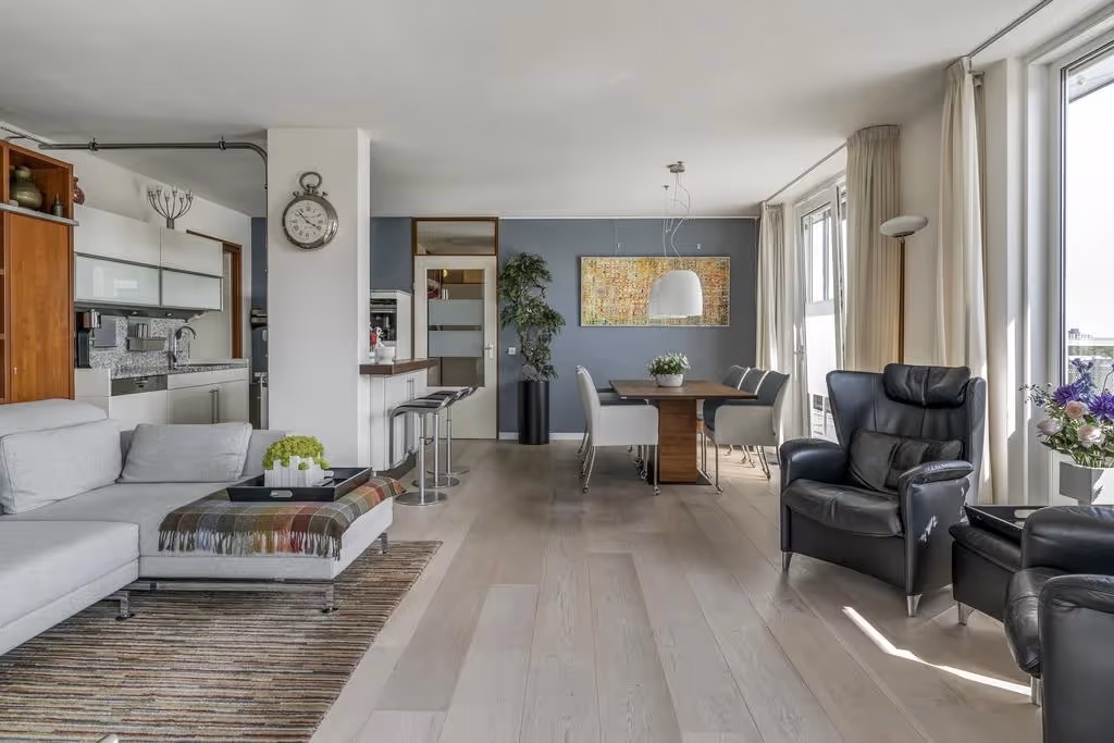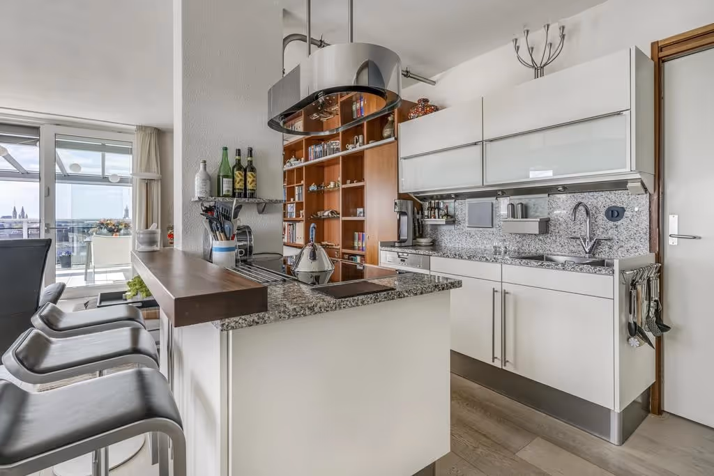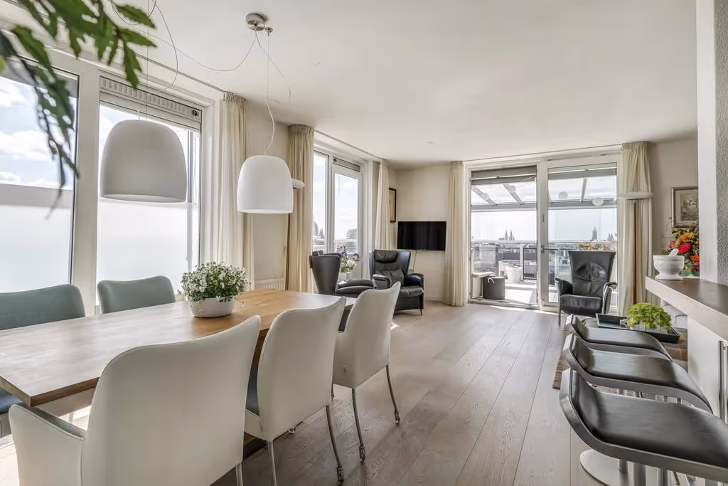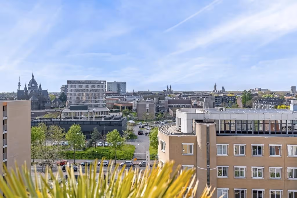 Wauw, wat een uitzicht! Vanaf het dakterras van dit penthouse zie je werkelijk de hele skyline van Roermond, met al haar markante gebouwen.