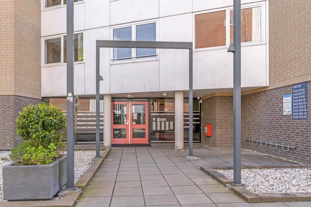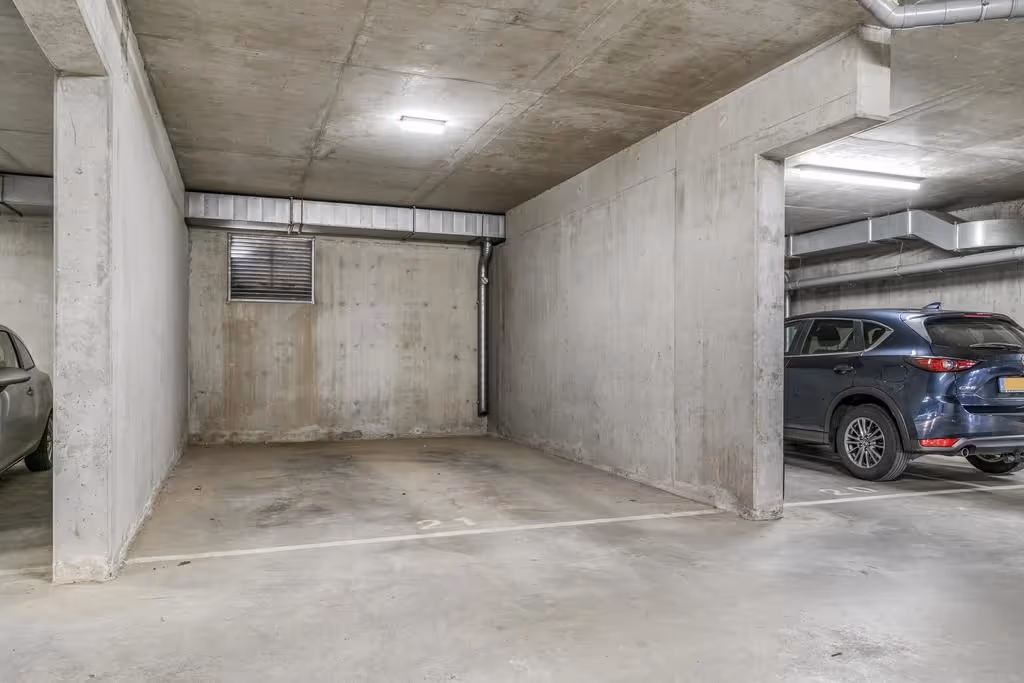 Centrale entreehal met brievenbussen, intercom en liftinstallatie. Ook zijn de parkeergarage en bergingen vanaf dit niveau bereikbaar, waar dit appartement over een eigen parkeerplaats en berging beschikt.