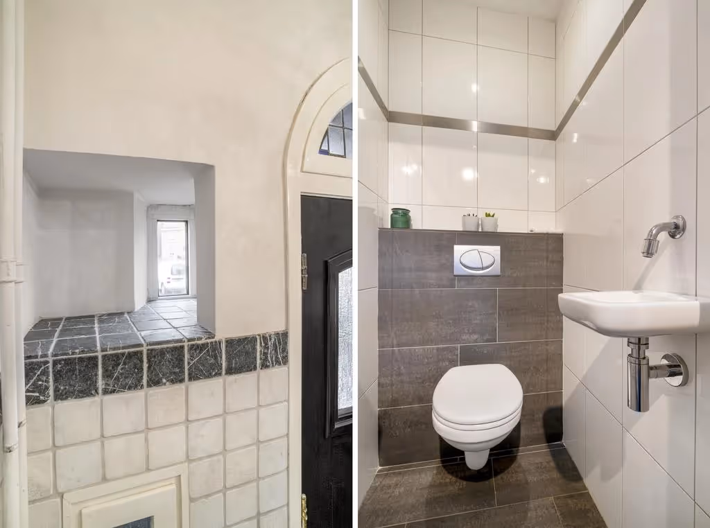 Bij de entree van dit sfeervolle woonhuis komt de charme je al tegemoet. Bij binnenkomst heeft de woning fraaie glas-in-lood deuren, die het voorportaal met de hal verbinden. Vanuit de hal zijn vervolgens het souterrain en de woonkamer te bereiken. Deze woonkamer heeft, net als het gehele woonhuis, een uitstekend niveau van afwerking, met o.a. een stijlvolle visgraat parketvloer, een dubbele gashaard en tuindeuren naar het terras. De woonkamer loopt vloeiend over in de riante woonkeuken, welke beschikt over een keukenblok in hoekopstelling. Uiteraard beschikt deze keuken over alle gemakken die je tegenwoordig wenst, waaronder een 6-pits gasfornuis met brede oven, een afzuigkap, combi magnetron, koelkast, diepvries en vaatwasser. De keuken beschikt verder over vloerverwarming en een prachtige lichtinval door de vele raampartijen. Vanuit de keuken is een 2e hal bereikbaar, met toegang naar het gastentoilet, een bijkeuken en een berging. In de bijkeuken zijn grote inbouwkasten met aansluitpunten voor het witgoed en hier is tevens de CV combiketel geplaatst (Nefit, eigendom, 2015). De berging, welke ook bereikbaar is via de buitenzijde middels een dubbele deur, is ideaal voor de fietsen, maar kan ook uitstekend fungeren als kantoor aan huis, of werk- of speelkamer.