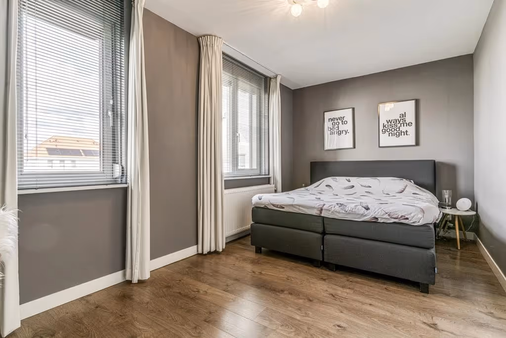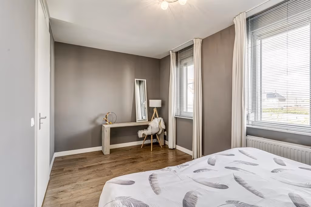 Via de overloop op de 1e verdieping zijn 3 fijne slaapkamers en de moderne badkamer bereikbaar. De hoofdslaapkamer, gelegen aan de achterzijde van het woonhuis is royaal. Alle slaapkamers hebben een keurig niveau van afwerking, met o.a. laminaatvloeren. Net als op de begane grond zijn alle kozijnen uitgevoerd in hardhout en met HR++ beglazing, maar op de slaapkamers zijn deze ook nog eens voorzien van zowel rolluiken, als horren. De moderne badkamer is van alle gemakken voorzien, met een riante inloopdouche, een wastafelmeubel met dubbele wastafel en een 2e toilet.