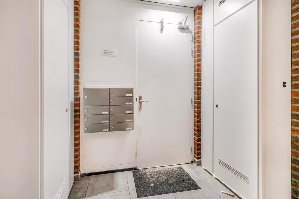 Centrale entreehal met brievenbussen en intercominstallatie. Trapopgang naar de verdiepingen en naar het souterrain van het complex, waar de privé bergingen zijn gelegen en waar ook dit appartement een eigen berging heeft. Verder heeft het appartement een eigen parkeerplaats en geniet je van de riante, gezamenlijke binnentuin.