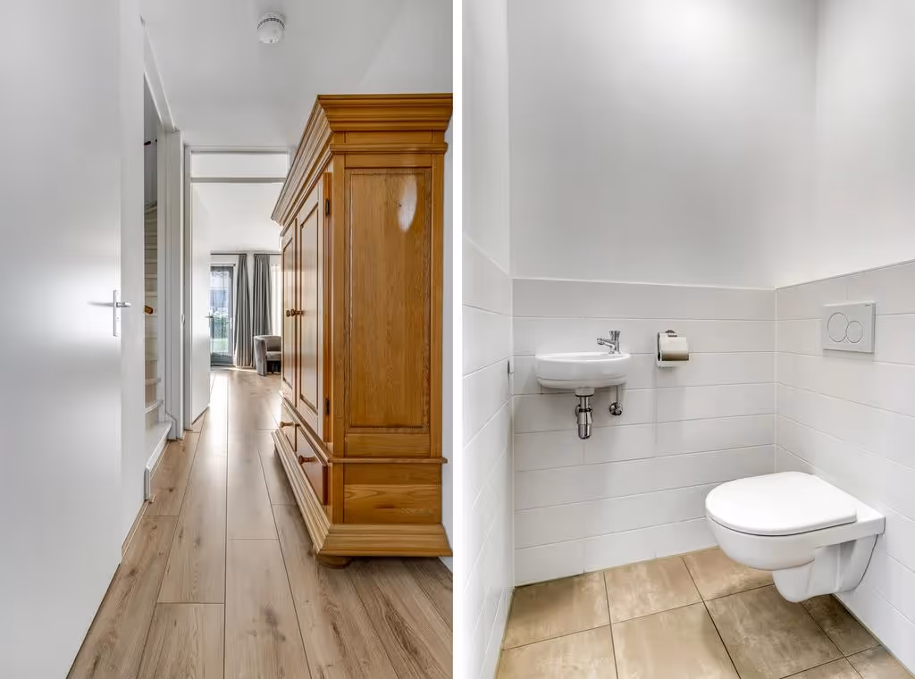 Via de overloop zijn 3 slaapkamers en de badkamer toegankelijk. Deze moderne badkamer beschikt over een inloopdouche, een 2e toilet en een wastafel. Alle 3 de slaapkamers hebben een keurig niveau van afwerking en kunststof kozijnen met HR++ beglazing.