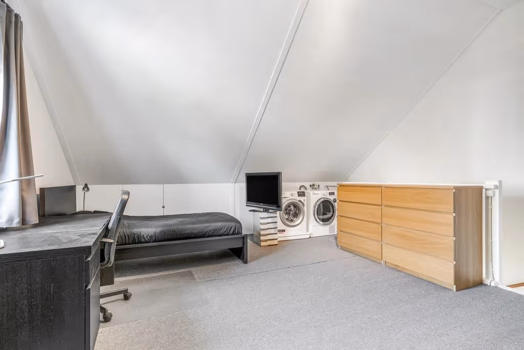 Via een vaste trap is de zolderverdieping te bereiken. Hier bevindt zich een ruime, extra (slaap)kamer, welke prima ingericht kan worden als 4e slaapkamer, speelkamer voor de kinderen of thuiswerkplek. Verder zijn hier de technische installaties geplaatst, waaronder de mechanische ventilatie unit, de CV combiketel (Intergas, eigendom, bouwjaar 2019) en de collector voor de zonnepanelen.
