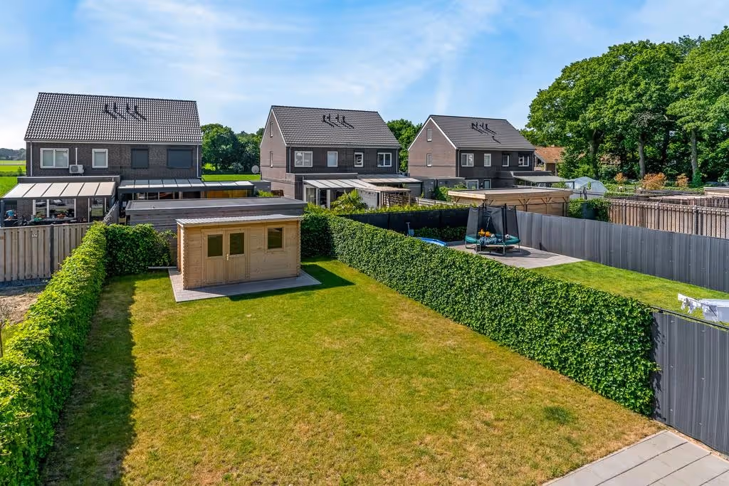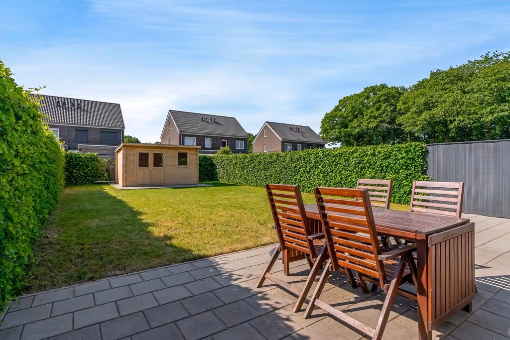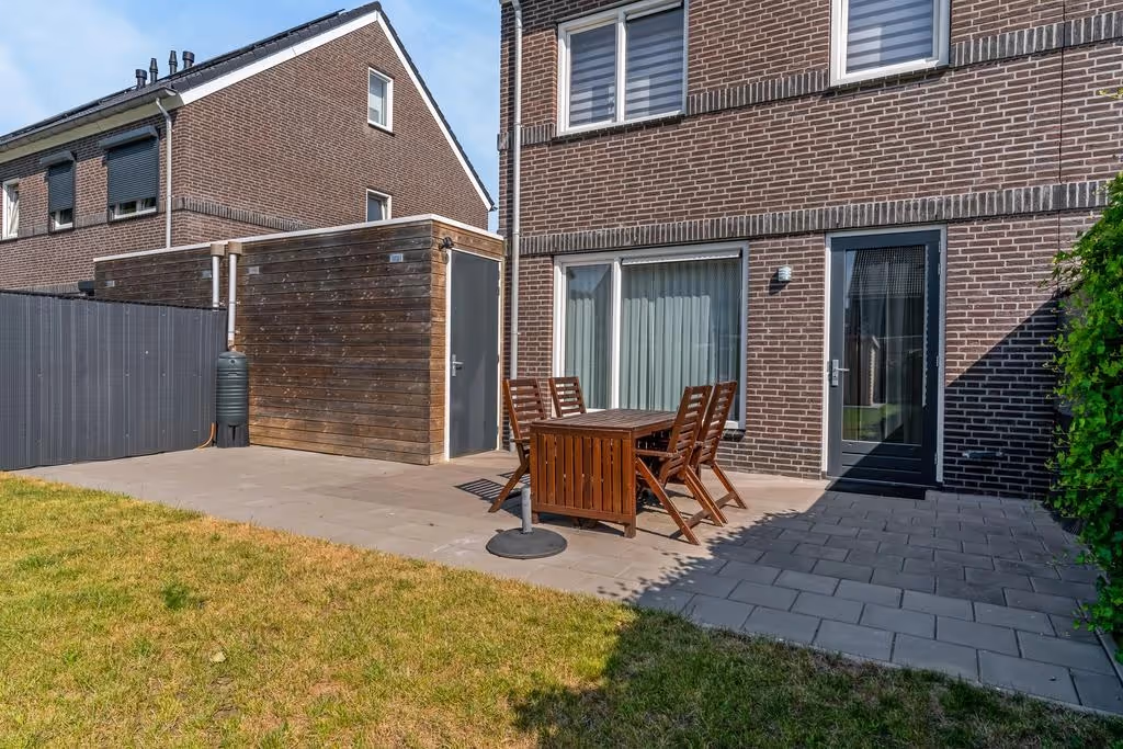 Deze fijne gezinswoning beschikt over een heerlijke achtertuin. Deze tuin is maar liefst 17 meter diep en gelegen op het zonnige Zuiden. Verder is de tuin voorzien van een terras, een groot gazon en is deze helemaal omheind. Tenslotte ligt hier de houten tuinberging, welke zowel vanuit de achtertuin, als de oprit, toegankelijk is. Let op; het 2e tuinhuis, welke op de foto’s zichtbaar is, is niet bij de prijs inbegrepen en zal worden verwijderd.