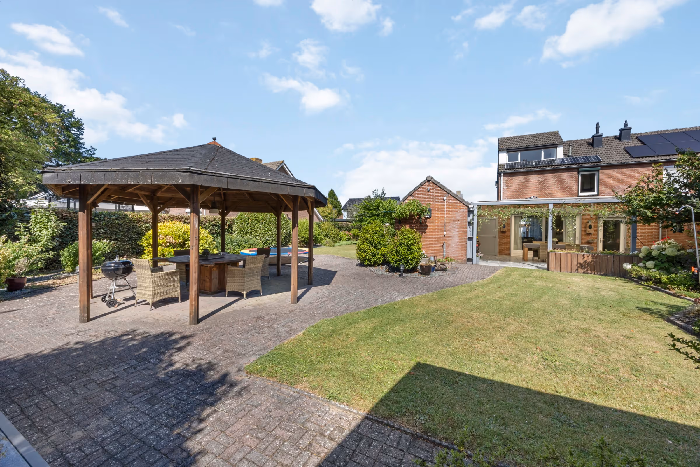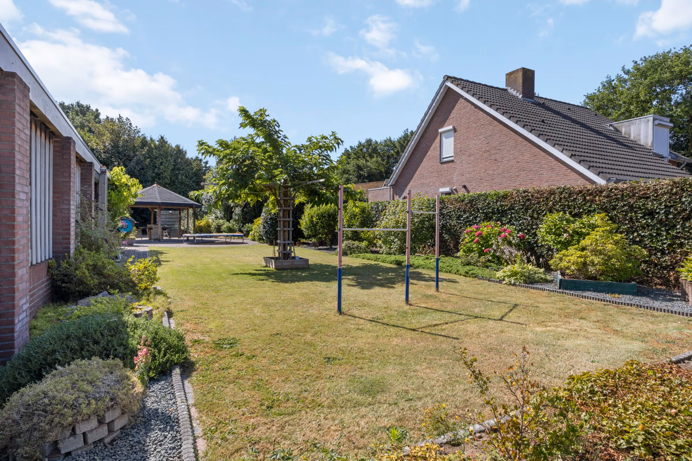 - Veel extra bergruimte in de tuin, o.a. een tuinhuis en containerberging