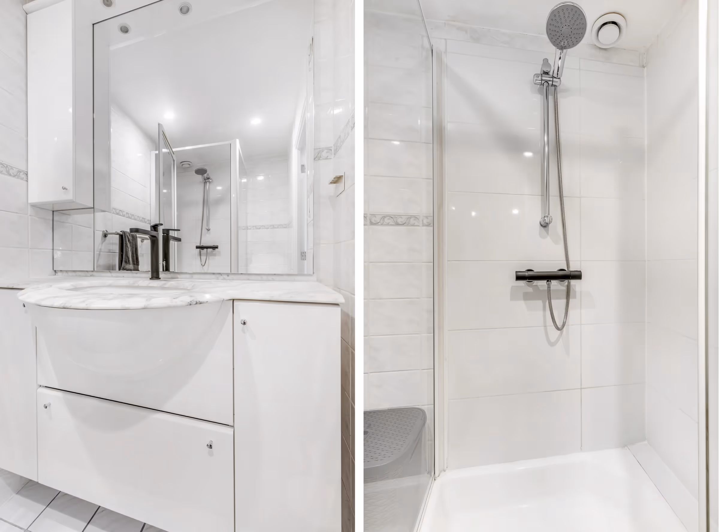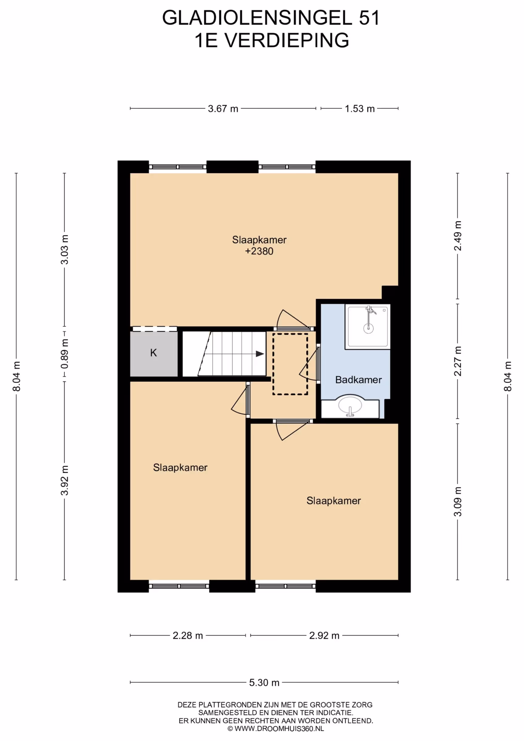 Via de overloop zijn 3 slaapkamers en de compacte badkamer toegankelijk. Deze heeft een douchecabine en een wastafelmeubel. Alle 3 de slaapkamers hebben, net als de begane grond, een keurig niveau van afwerking, met wederom kunststof kozijnen met HR++ beglazing en rolluiken.