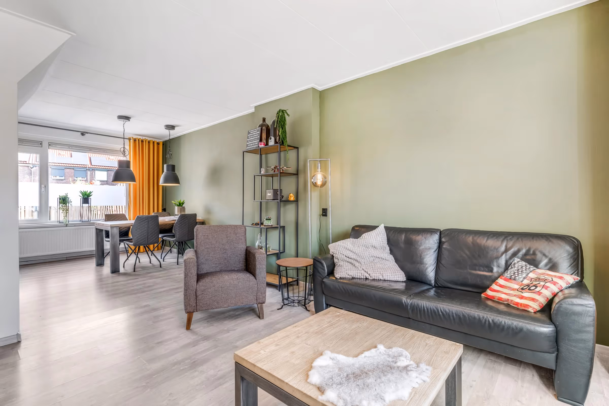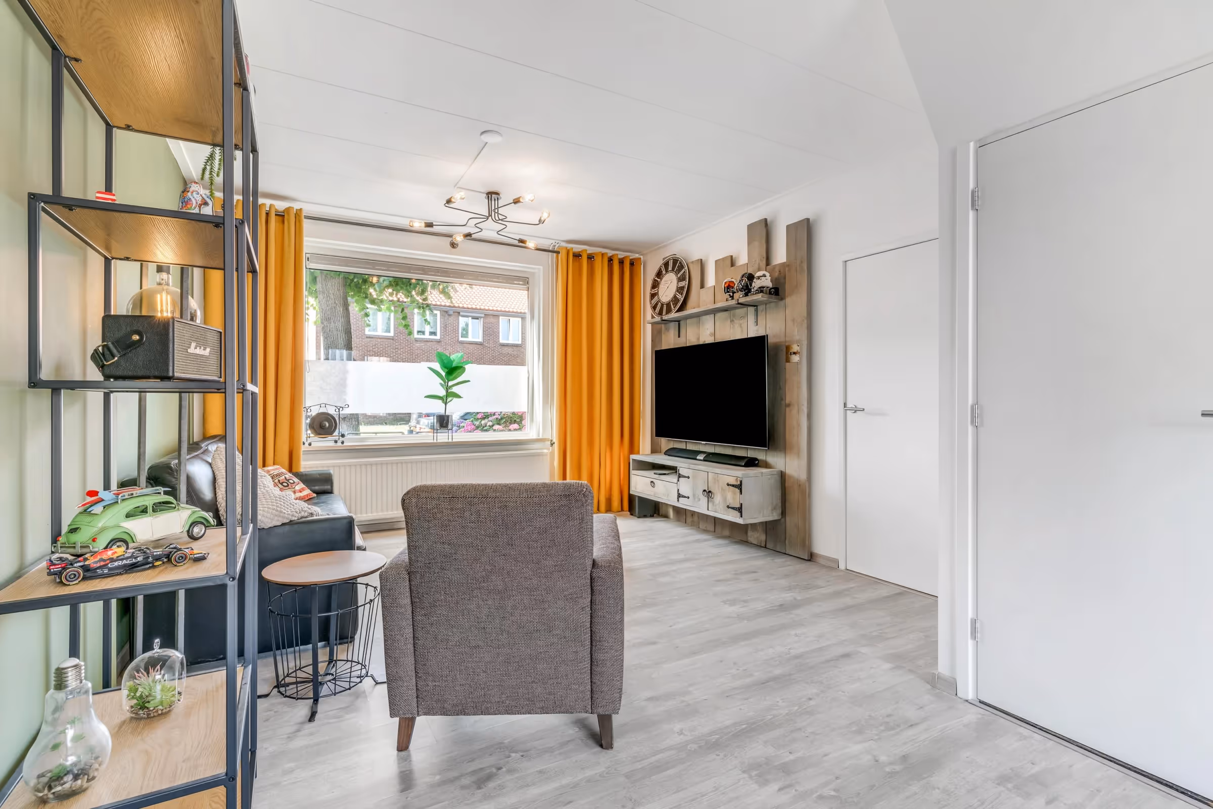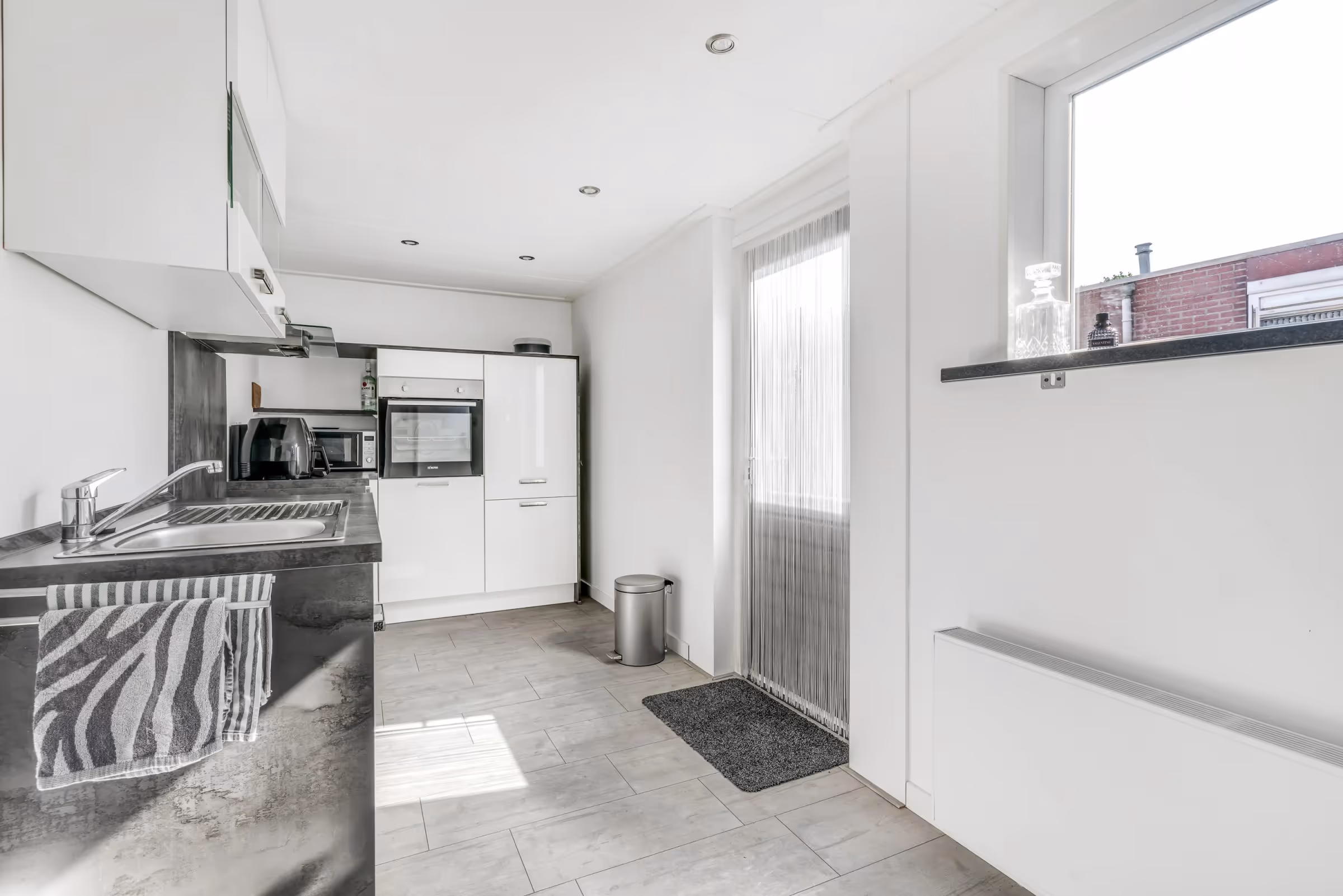 Entree in de ontvangsthal, met toegang naar de woonkamer, meterkast en betegeld toilet. De woonkamer is licht, open en heeft een nette afwerking met o.a. laminaatvloeren en kunststof kozijnen met HR++ beglazing. Vanuit de woonkamer is de keuken bereikbaar. Deze keuken heeft een modern keukenblok in hoekopstelling, welke is geplaatst omstreeks 2017. Verder is de volgende apparatuur ingebouwd: een 4-pits inductie kookplaat, RVS wasemkap, oven, koelkast en handige vaatwasser. Vanuit de keuken is de achtertuin bereikbaar.
