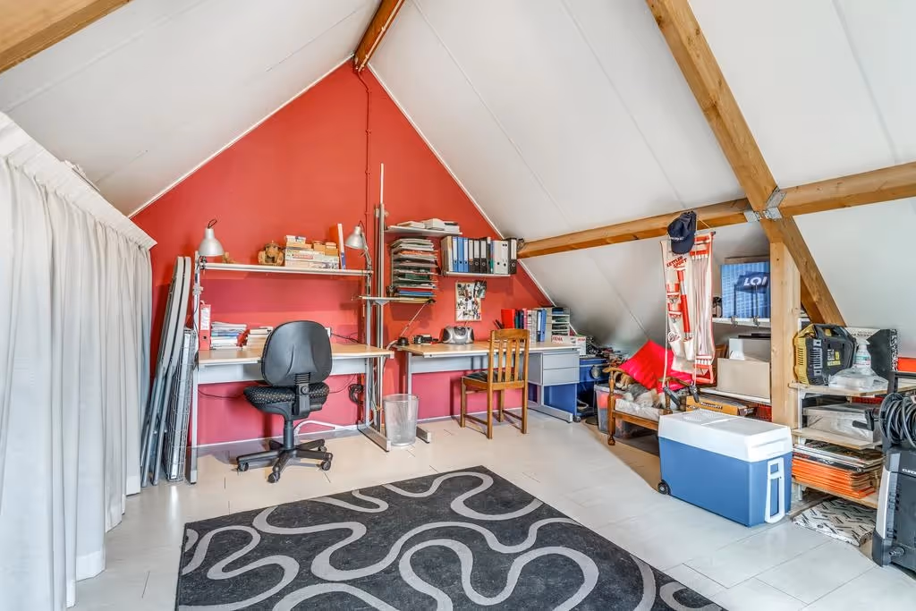 Via een vaste trap is de zolderverdieping bereikbaar. Hier is een extra (slaap)kamer gelegen en hier hangt de CV combiketel (Vaillant, huur, 2014).