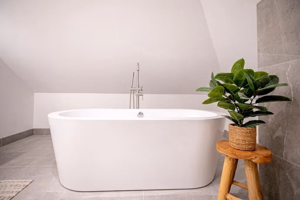 - Moderne badkamer met inloopdouche en vrijstaand ligbad