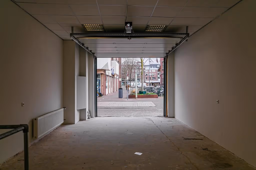 Entree in de ontvangsthal, aan de zijde van de Bakkerstraat, of rechtstreeks in de multifunctionele ruimte op de begane grond, via de Sint Christoffelstraat. In deze ruimte is momenteel een compact keukenblok aanwezig, met kraan, spoelbak en koelkast. Hier kun je bijvoorbeeld je eigen zaak, salon of kantoor aan huis beginnen. De bestemming laat detailhandel en dienstverlening toe, vraag ons maar naar de details. Ook is vanuit deze ruimte een gastentoilet toegankelijk. Tenslotte is vanuit de entreehal de inpandige garage te bereiken. Hoe luxe is dat? Een eigen garage middenin de Roermondse binnenstad. Deze riante garage van 37 m² is verwarmd en heeft een elektrische sectionaalpoort.