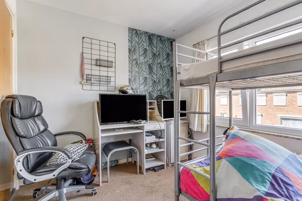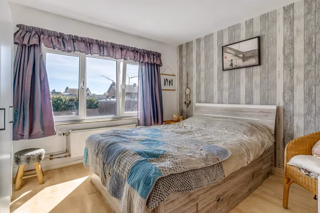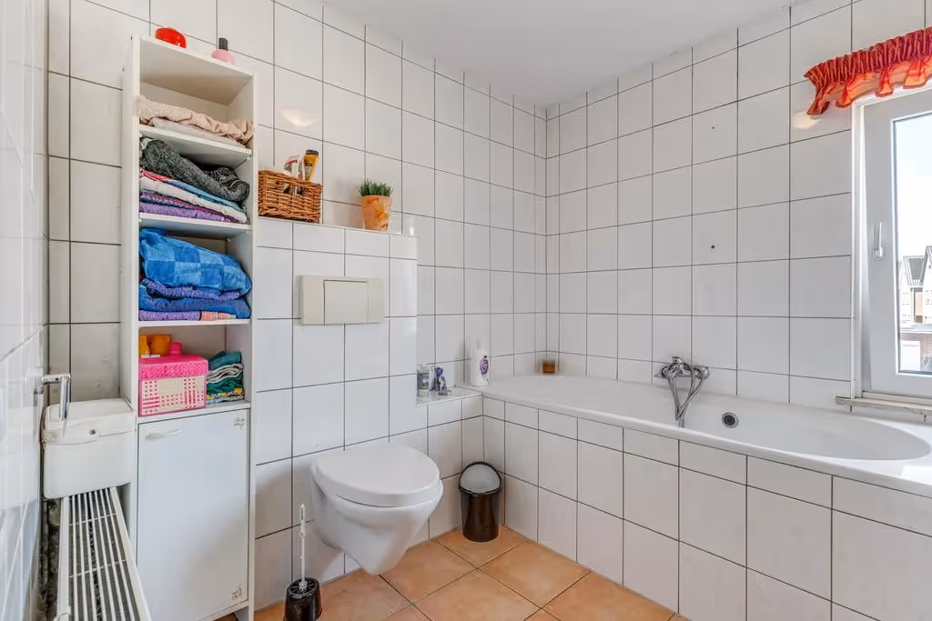 Via de overloop zijn 3 prima slaapkamers en de badkamer bereikbaar. De badkamer beschikt over een wastafel, een ligbad en een 2e toilet. Alle 3 de slaapkamers hebben een prima maatvoering en kunststof kozijnen met HR++ glas. Tenslotte hebben 2 van de 3 slaapkamers inbouwkasten.