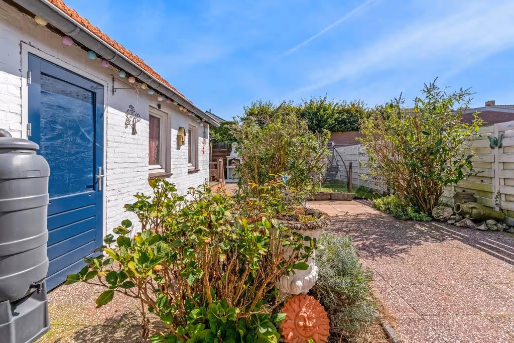 Deze fijne woning heeft ook een heerlijke tuin, welke met een groot terras, veel groen en verschillende zithoekjes is aangelegd. De tuin ligt op het Zuid Oosten en in de tuin ligt nog een vrijstaand stenen garage / berging.