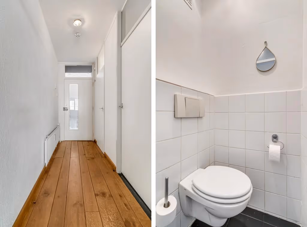 Het appartement zelf ligt op de 2e verdieping. Je komt binnen in de hal en die geeft toegang tot diverse kamers.