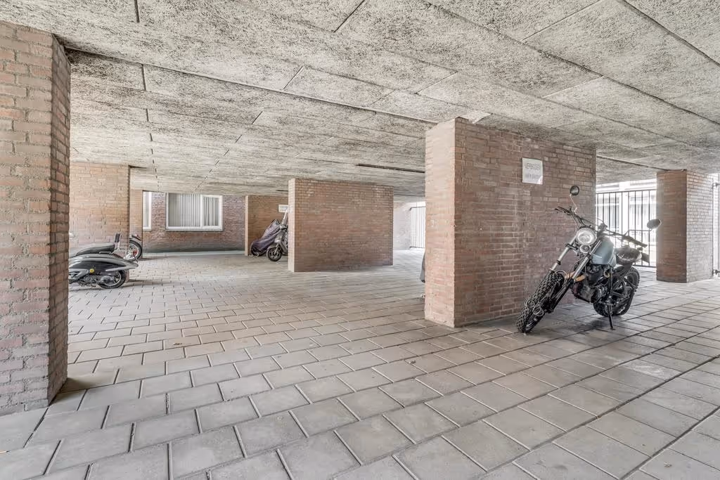 Centrale entreehal met brievenbussen en intercominstallatie. Trapopgang naar de verdiepingen en via het overdekte gedeelte van het complex zijn de privé bergingen gelegen, waar ook dit appartement een eigen berging heeft.