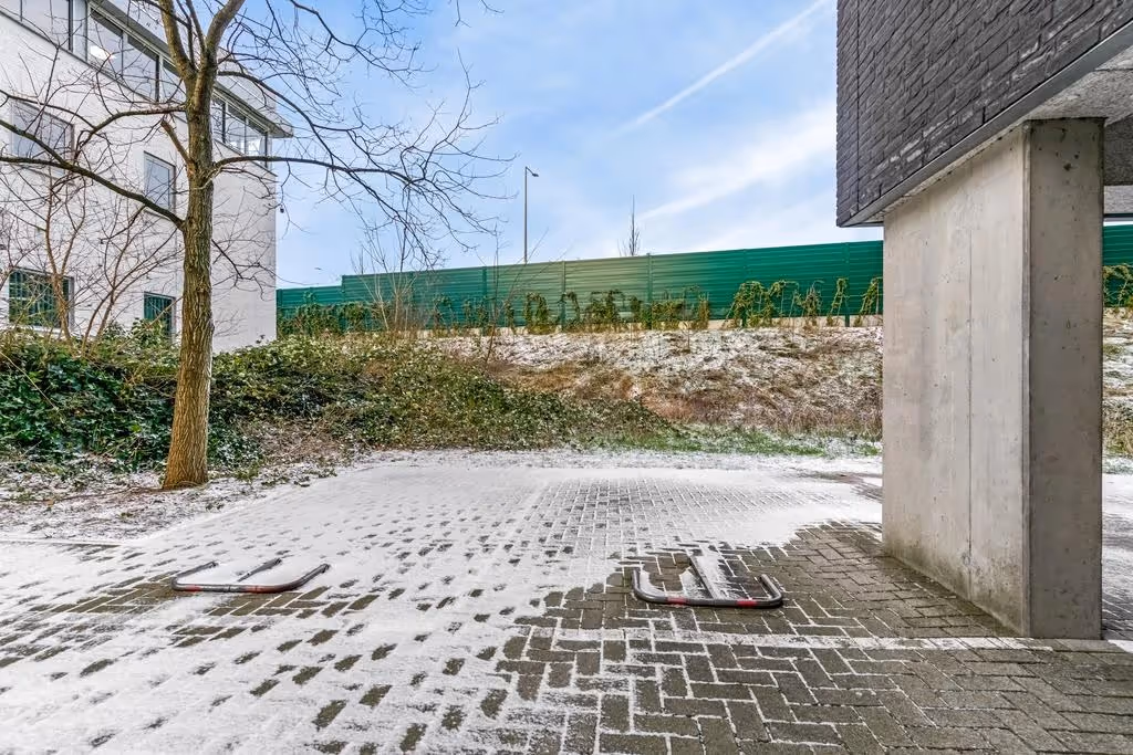 Dit appartement beschikt over 2 privé parkeerplaatsen, waarvan 1 naast de overdekte parkeergarage is gelegen en de 2e buiten op het afgesloten terrein.
